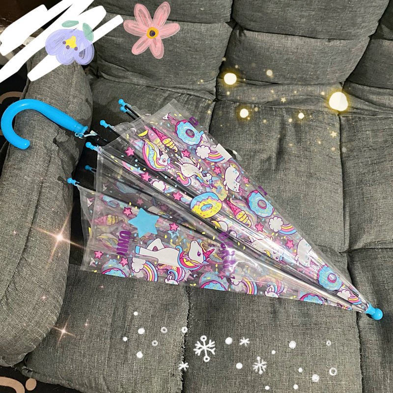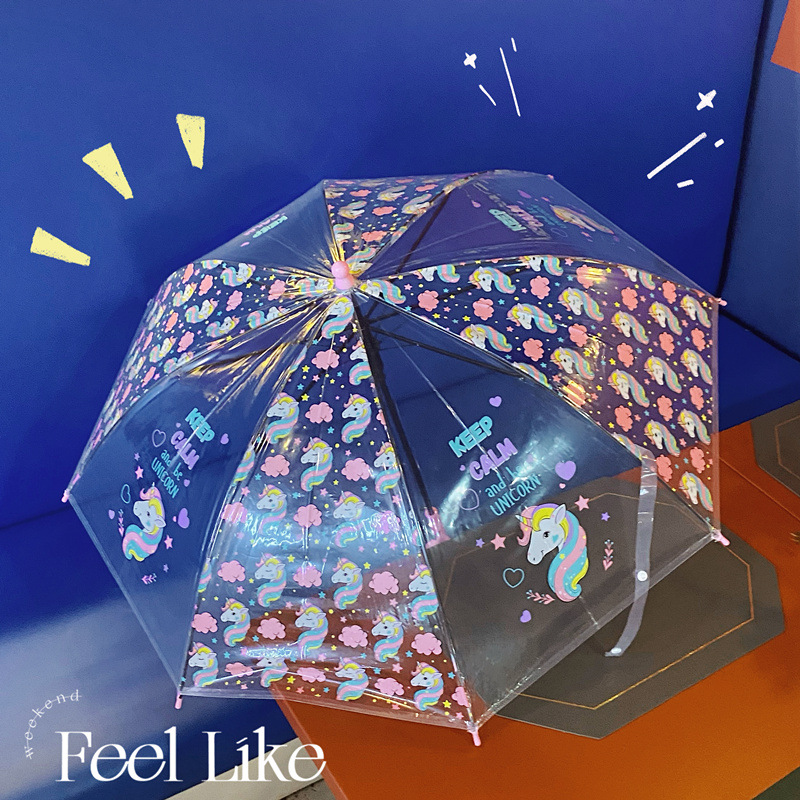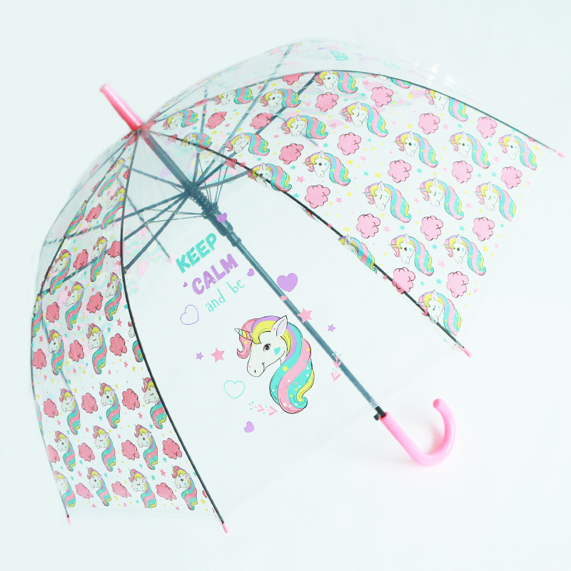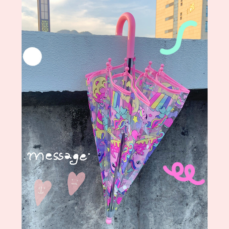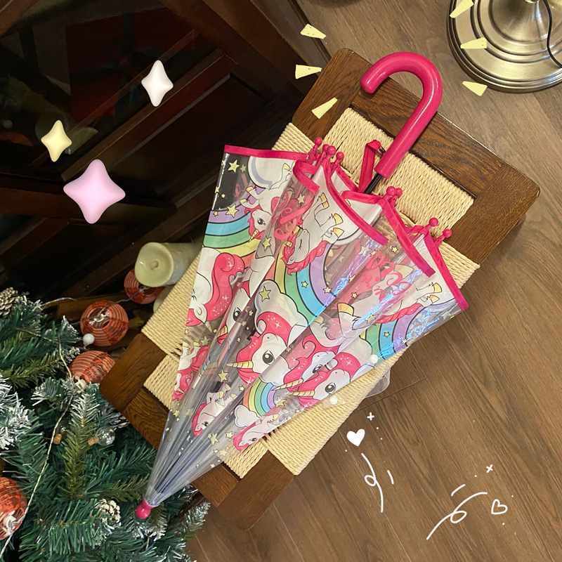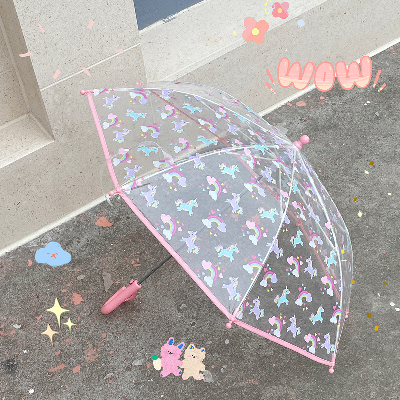 핑크 귀여운 유니콘 투명 우산 어린이 우산 초등학교 소녀 아기 유치원 작은 우산 만화 자동스토어 가기