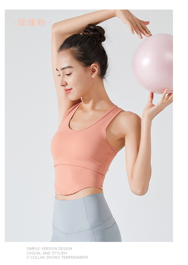 여성용 넓은 어깨끈 스포츠 브라, 충격방지 러닝, 푸쉬업 요가, 가슴 패드가 있는 트레이닝 조끼, 아름다운 등 디자인 브라