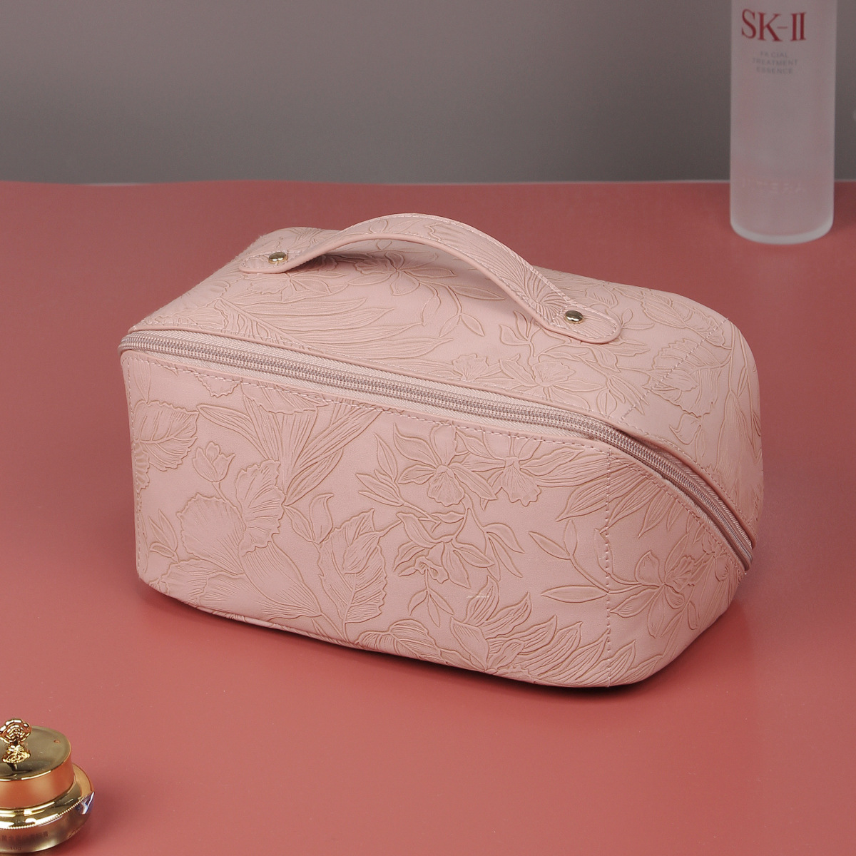크로스보더 휴대용 화장품 가방 아마존 PU 가죽 대용량 다기능 입체 패턴 수납 세면용품 휴대용 가방