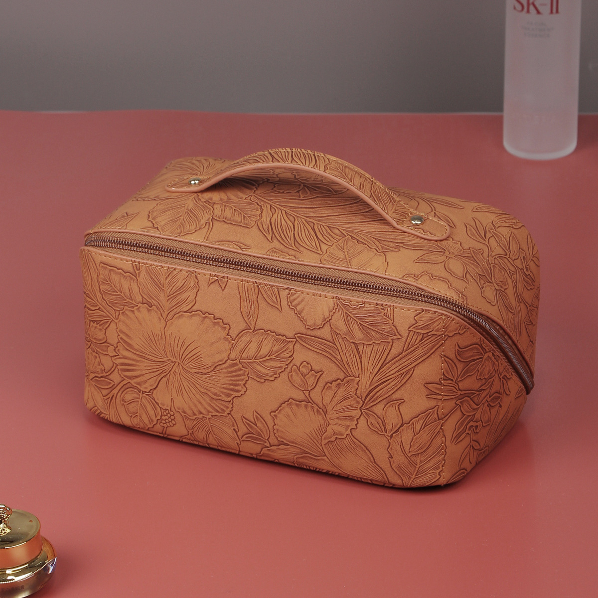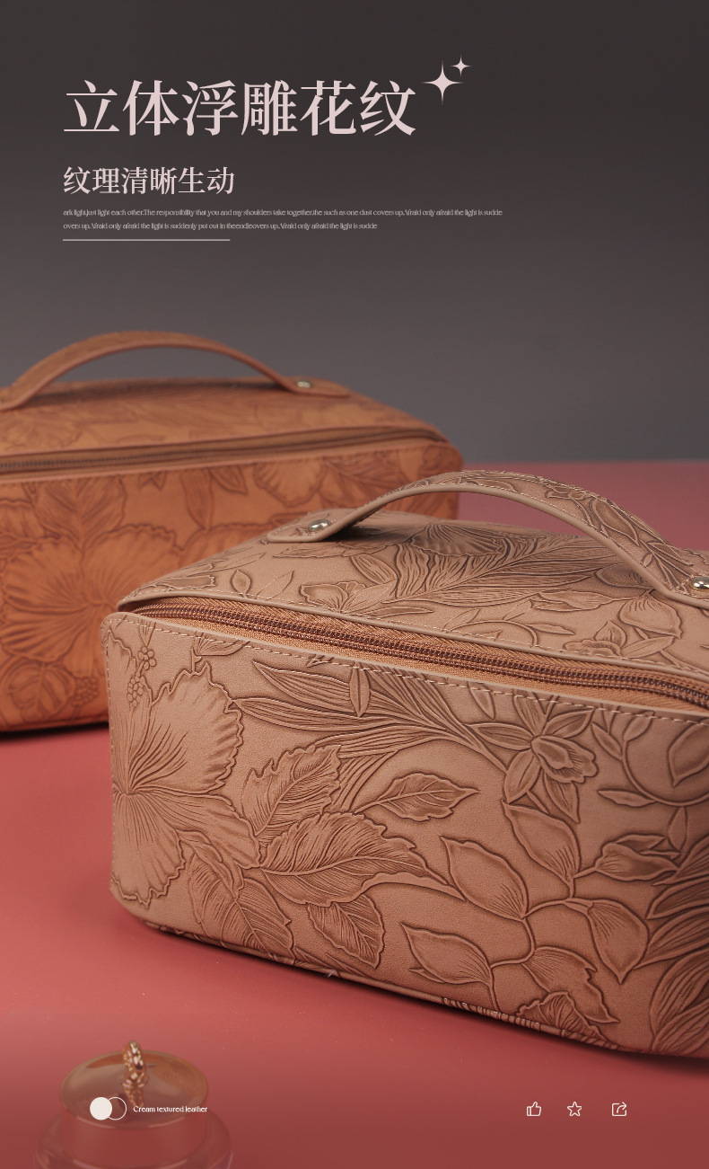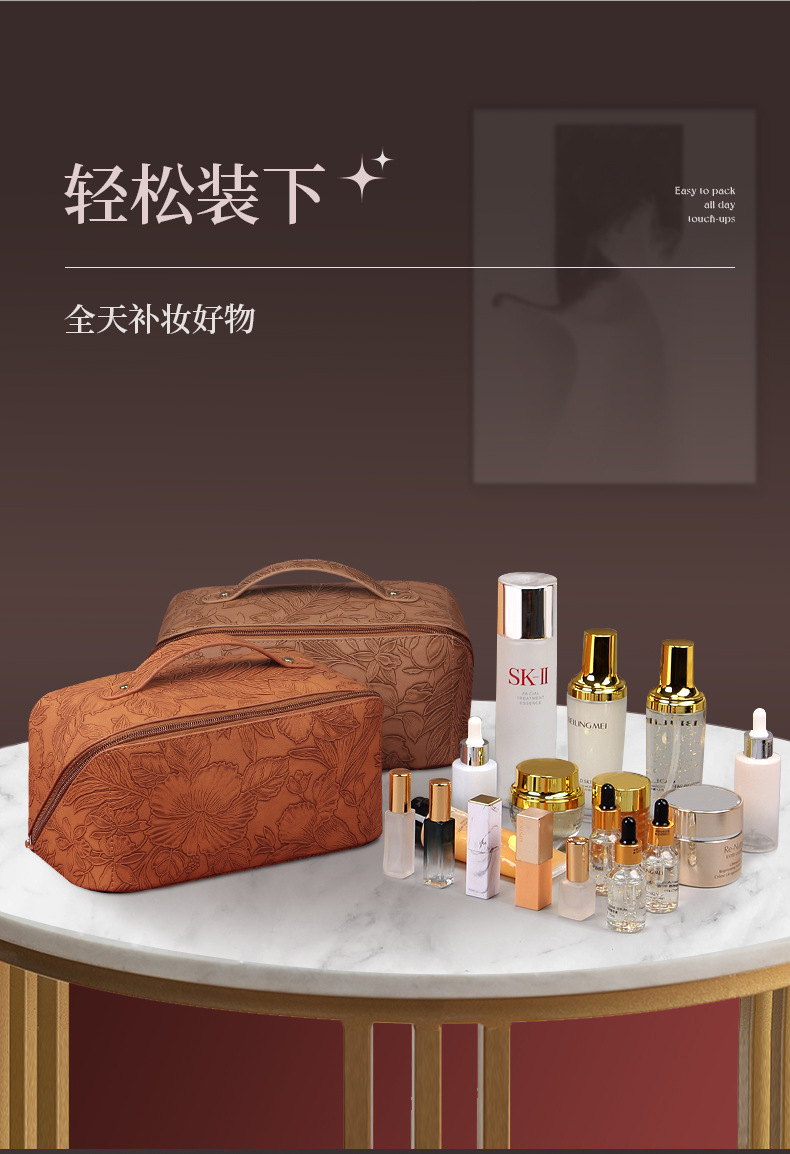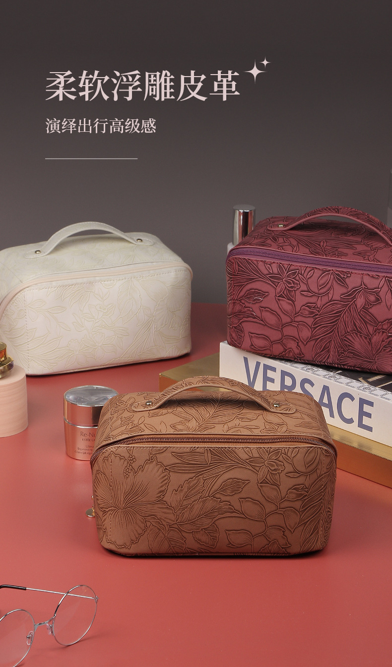 크로스보더 휴대용 화장품 가방 아마존 PU 가죽 대용량 다기능 입체 패턴 수납 세면용품 휴대용 가방스토어 가기