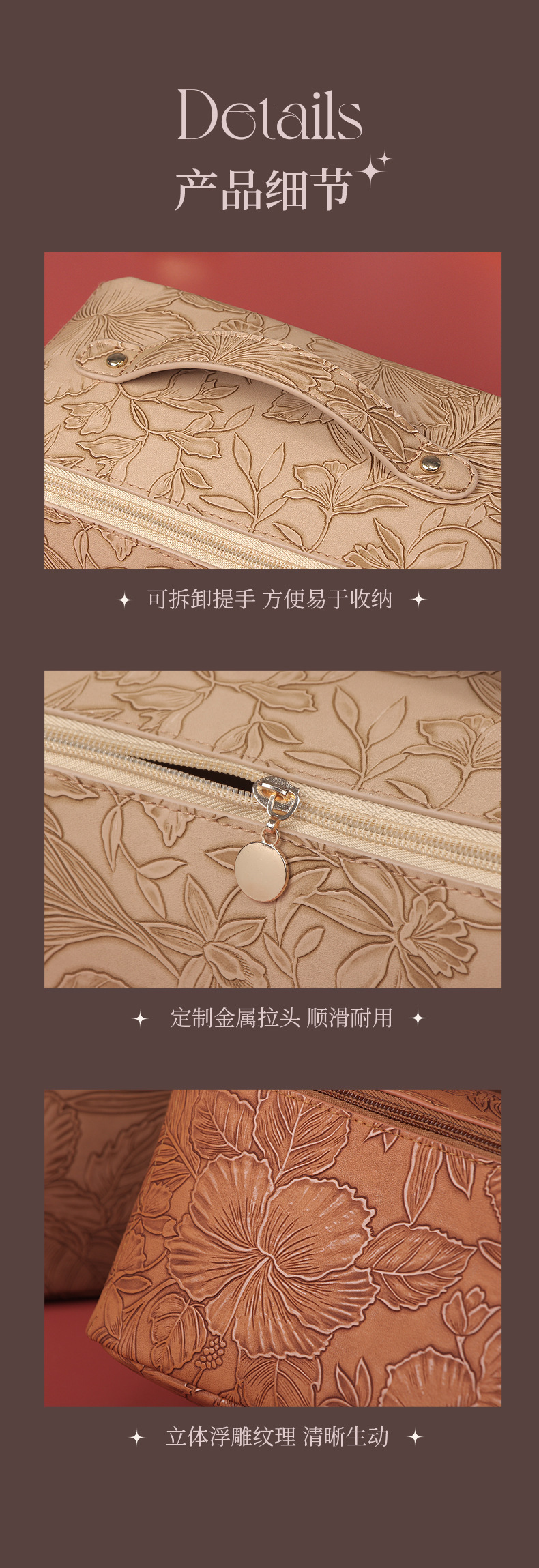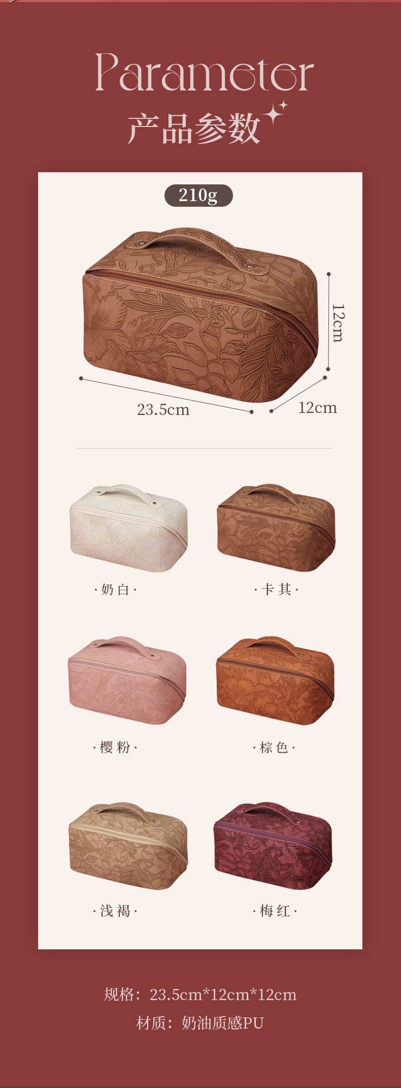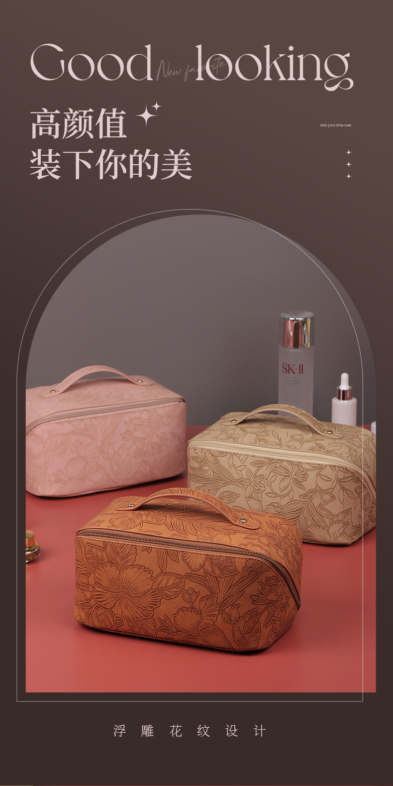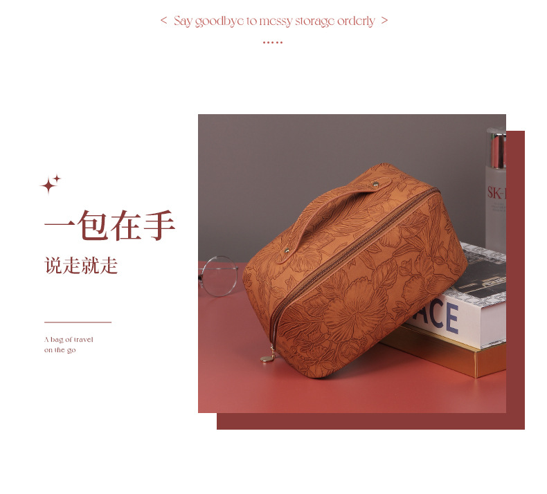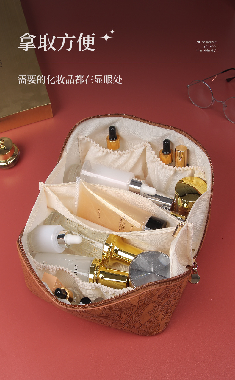 크로스보더 휴대용 화장품 가방 아마존 PU 가죽 대용량 다기능 입체 패턴 수납 세면용품 휴대용 가방스토어 가기