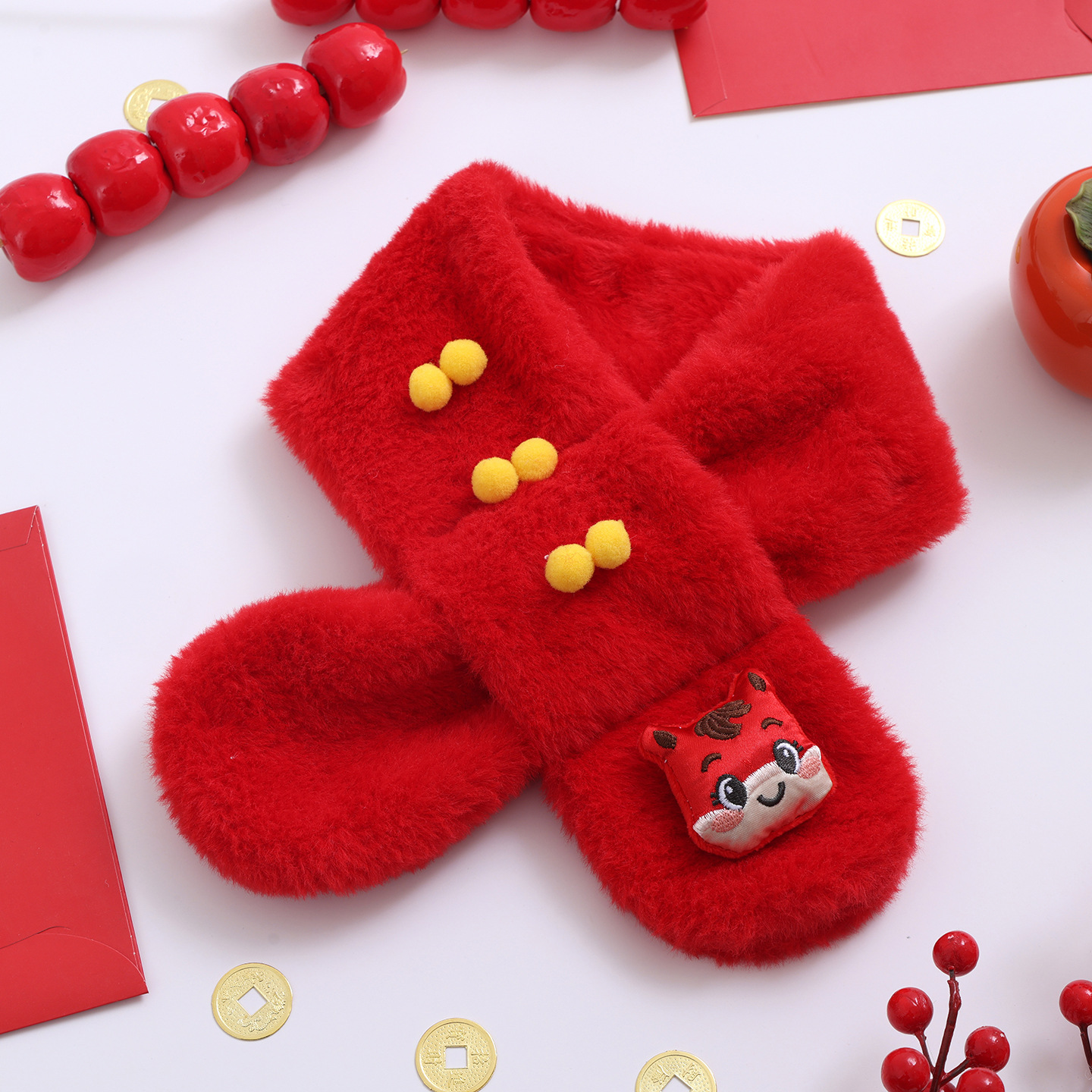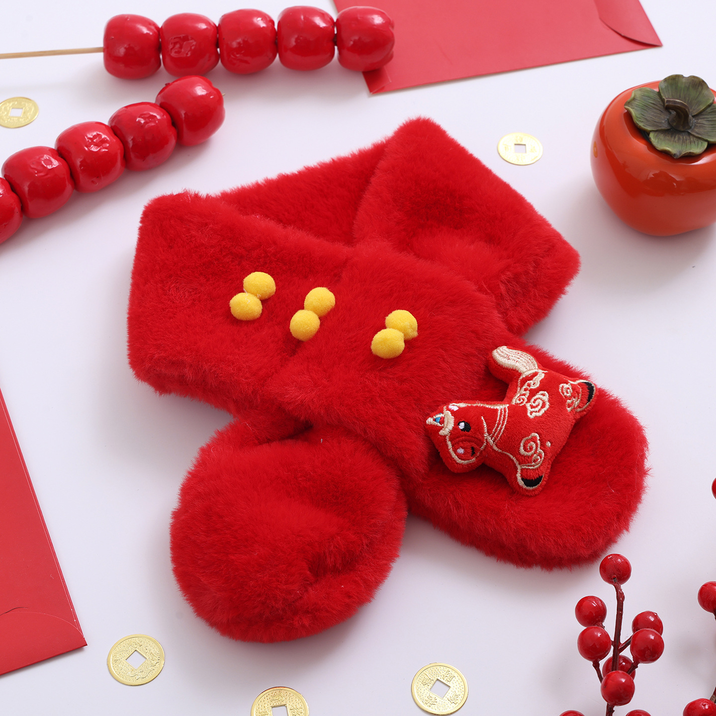 새해 중국식 빨간색 어린이용 플러시 스카프 두꺼운 목도리 모조 토끼털 남녀 아기 겨울 축제용 목도리