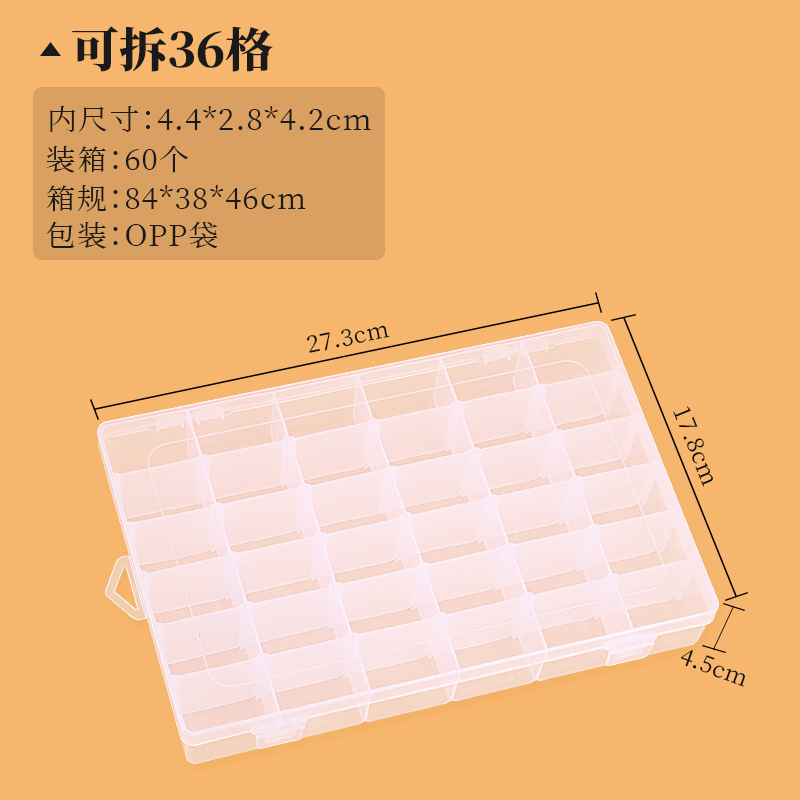 36 그리드 플라스틱 보관함 투명 보석 상자 분리 가능한 도구 상자 DIY 마무리 상자 고무 밴드 상자 물고기 후크 보관 상자스토어 가기
