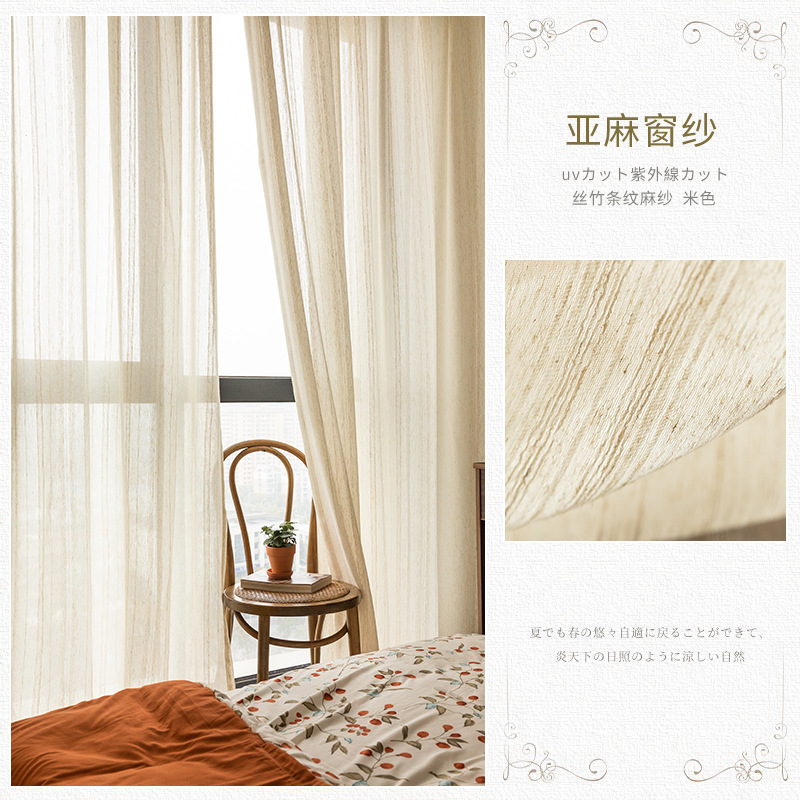 일본식 코튼 린넨 투명 린넨 스크린 스크린 일본의 유명한 스트라이프 코튼 린넨 커튼 거즈 커튼 거실 찻집