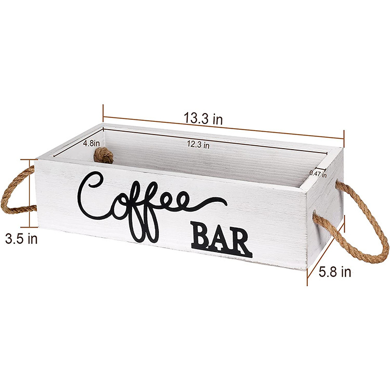 나무 데스크탑 보관함 커피 바 밀크 티백 커피 캡슐 보관함 대마 로프 휴대용 편지 상자