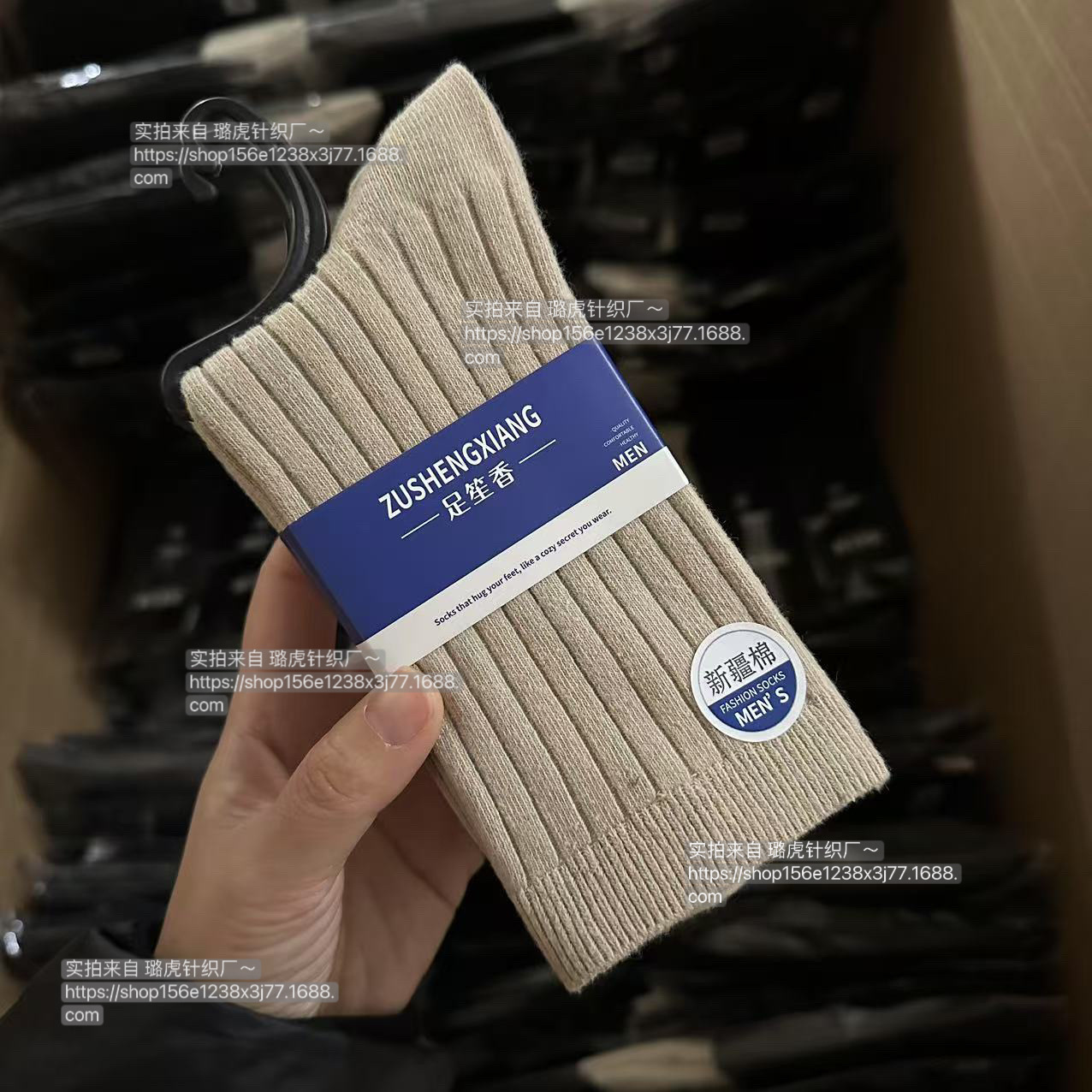 고급 신장면 양말 남성용 가을 겨울 중목 양말 탈취 흡한 남성용 면 양말 단색 보온 롱 양말 도매