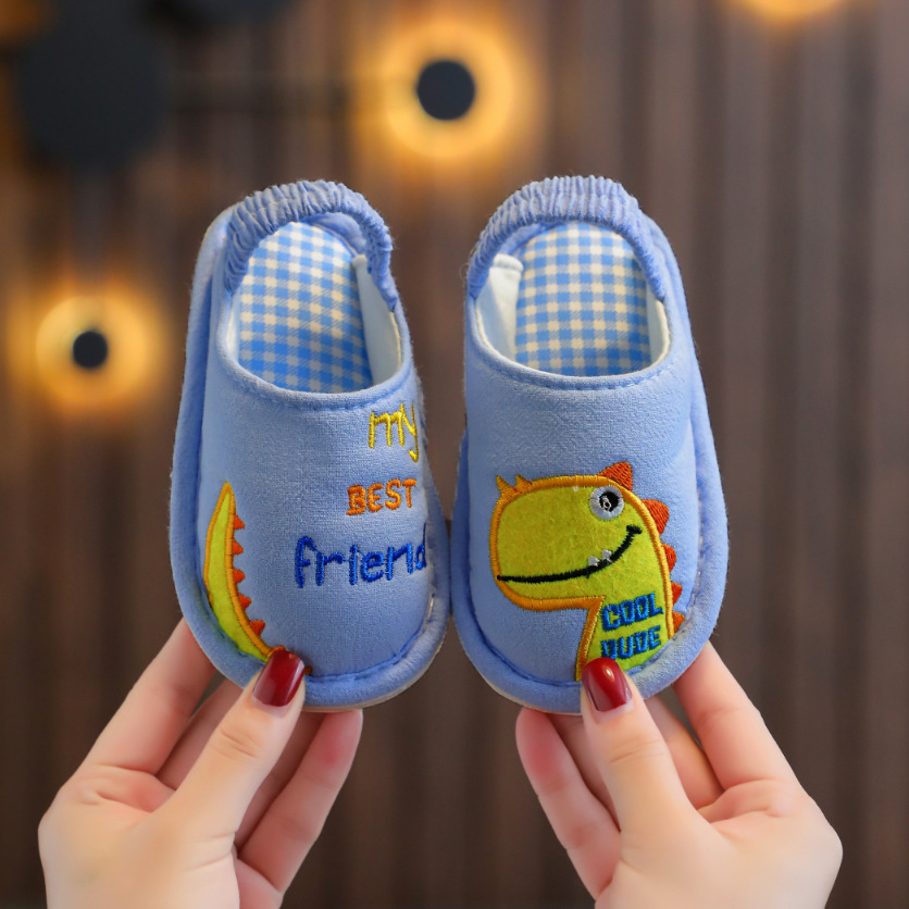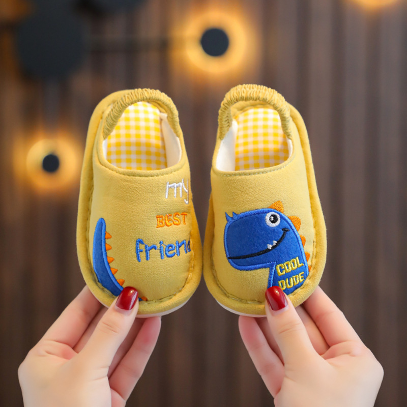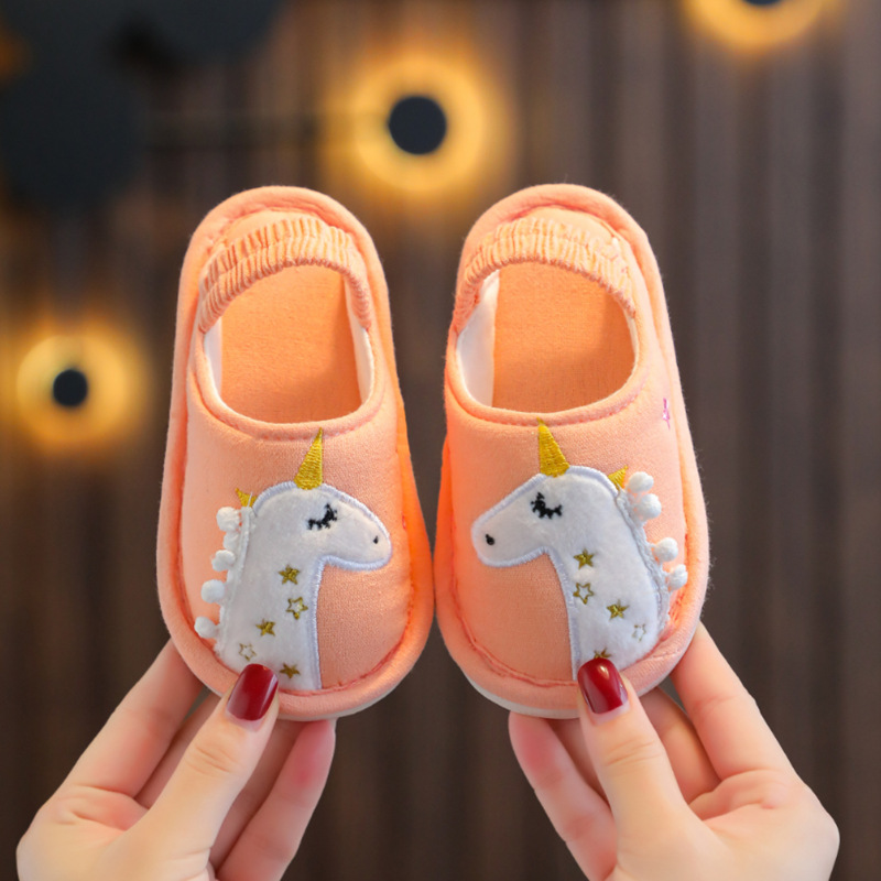 어린이 사계절 소년과 소녀 면 도매 아기 만화 홈 미끄럼 방지 면 슬리퍼 발 뒤꿈치가있는 아기스토어 가기
