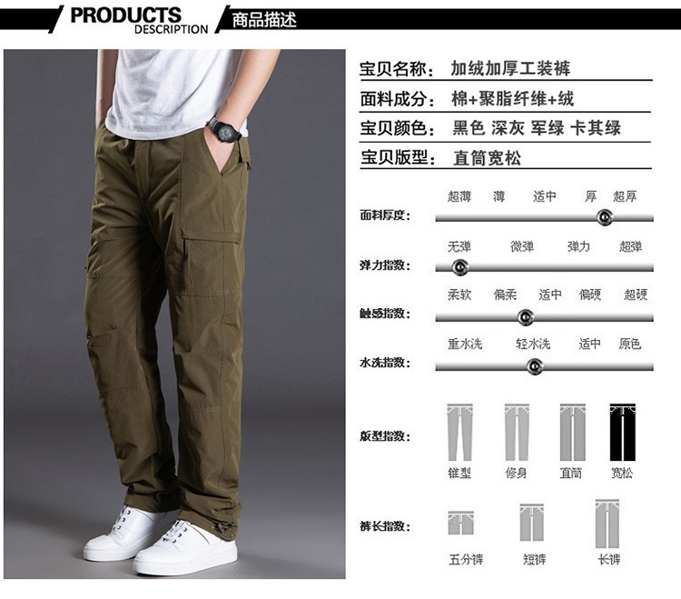 대외 무역 도매 남성 면 바지 기모 두꺼운 따뜻한 방풍 방수 야외 스포츠 멀티 백 작업 바지 플러스 사이즈스토어 가기