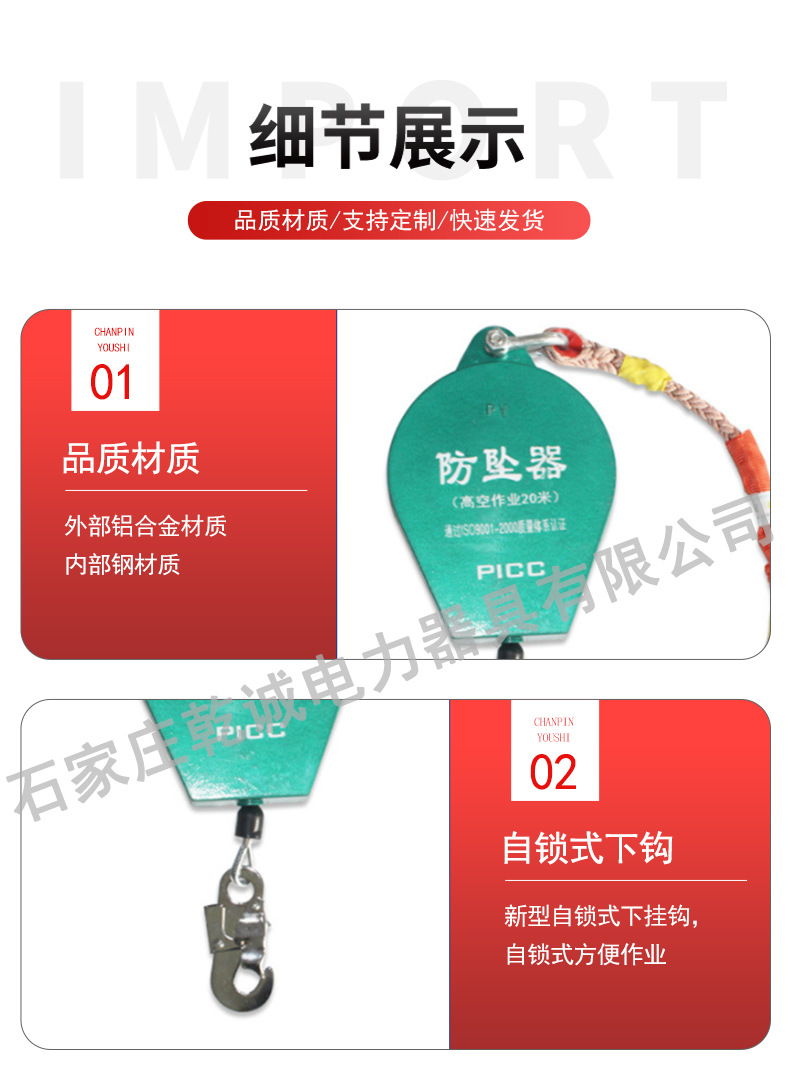 도매 속도 차이 낙하 방지장치 고고도 조작 스틸 케이블형 안전 로프 보호 낙하 타워 크레인 인체 감속 자동 컨트롤러스토어 가기