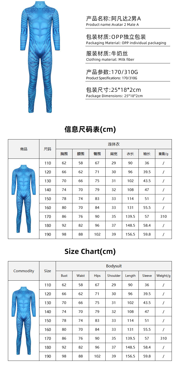 알리익스프레스 아바타3 물의 길 성인 무대 코스프레 의상 위장 점프수트 아바타 코스튬