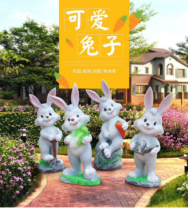 야외 꽃밭 장식품 빌라 안뜰 장식 스케치 만화 토끼 풍경 조각 시뮬레이션 동물 장식품스토어 가기