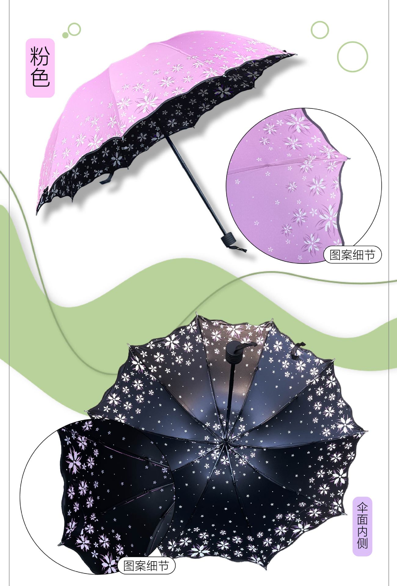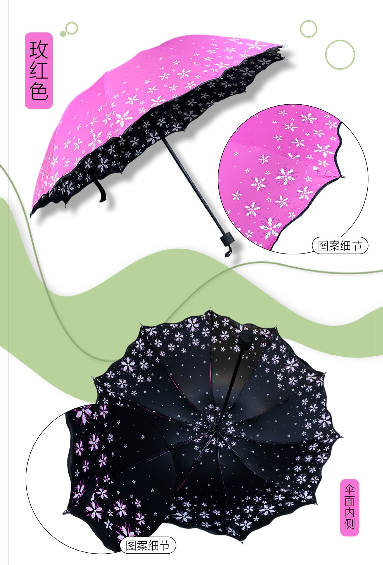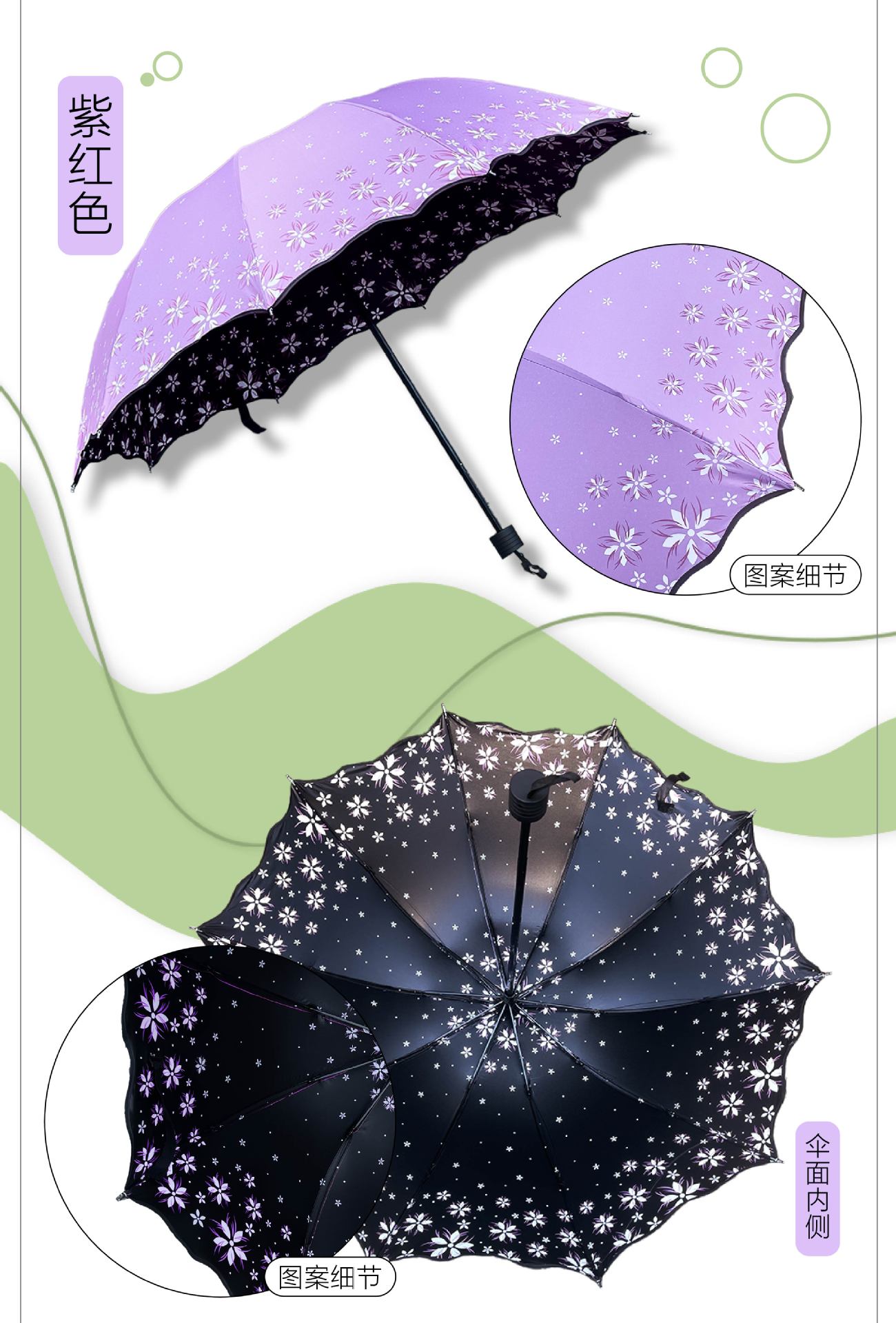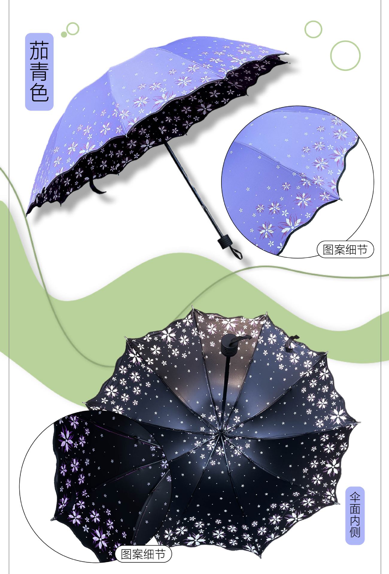 • [열 뼈] 검은 고무 주름 인쇄 가지 녹색