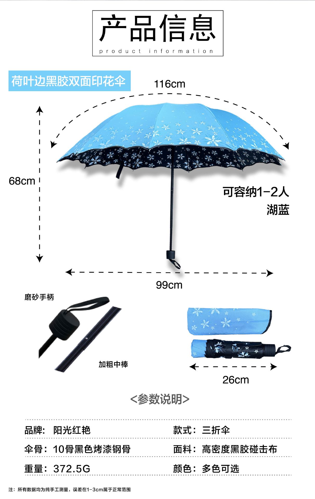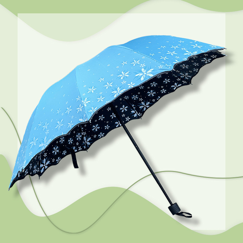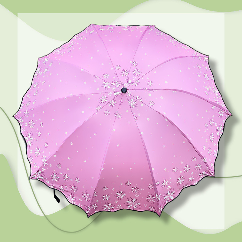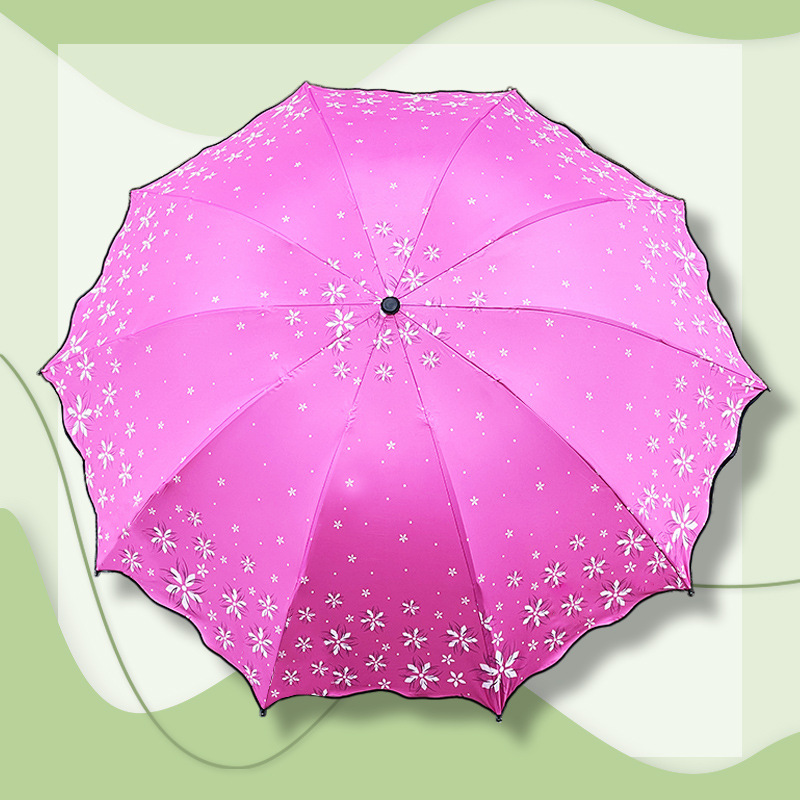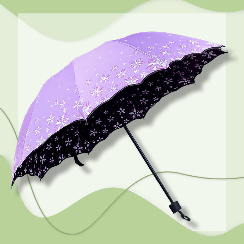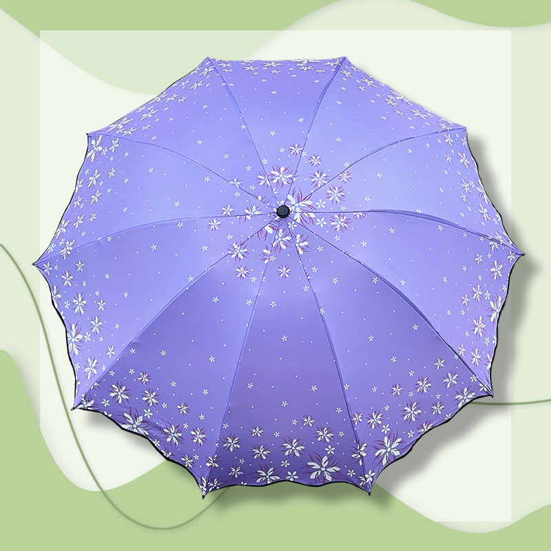 맑고 비가 오는 이중 사용 비닐 우산 10 본 익스텐더 더블 인 차양 태양 우산 3-접이식 휴대용 러플 우산 여성용스토어 가기