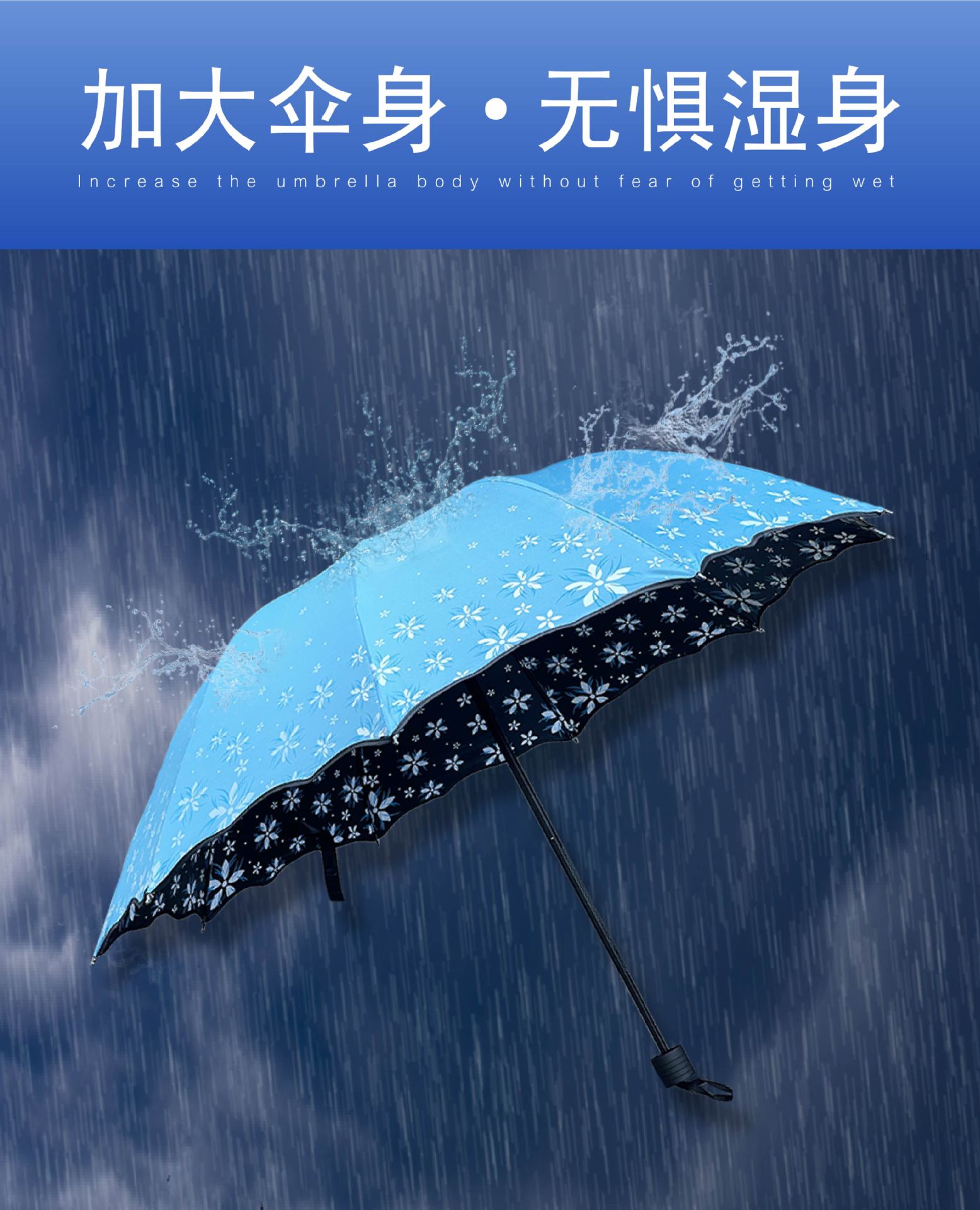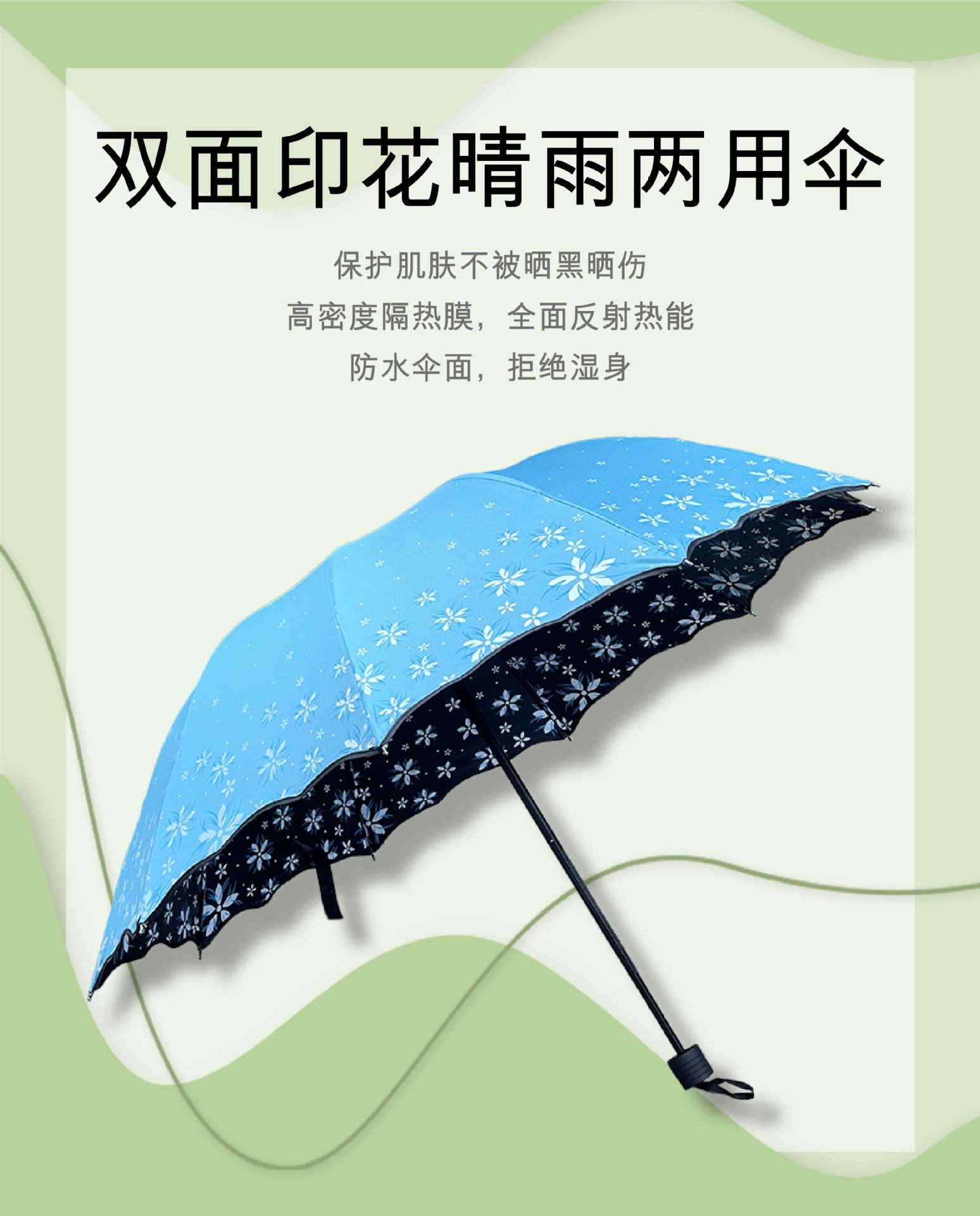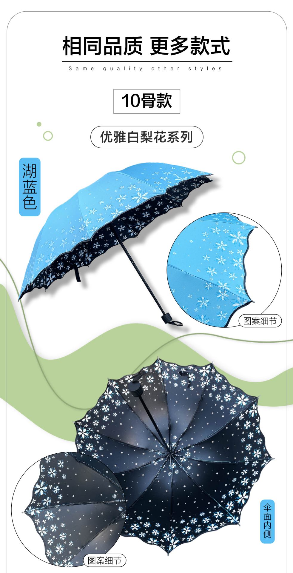 맑고 비가 오는 이중 사용 비닐 우산 10 본 익스텐더 더블 인 차양 태양 우산 3-접이식 휴대용 러플 우산 여성용스토어 가기