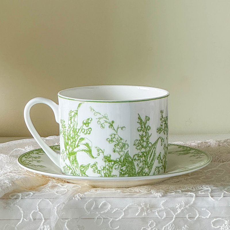• 그린 에메랄드 본 차이나 컵과 접시