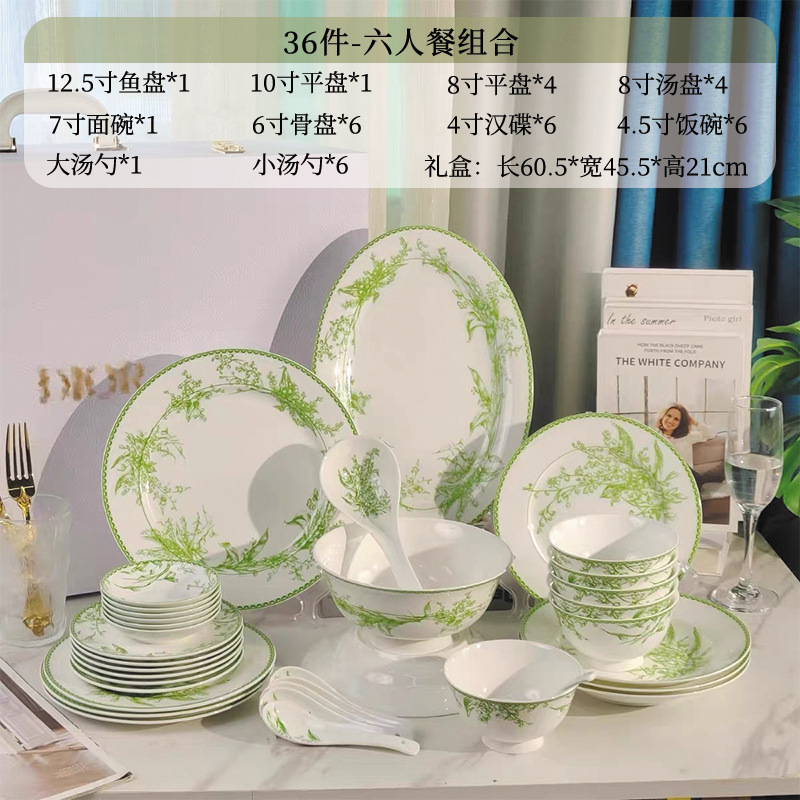 에메랄드 그린 은방울꽃 시리즈 세라믹 서양식 디너 플레이트 세트 고급 케이크 플레이트 프렌치 플레이트스토어 가기