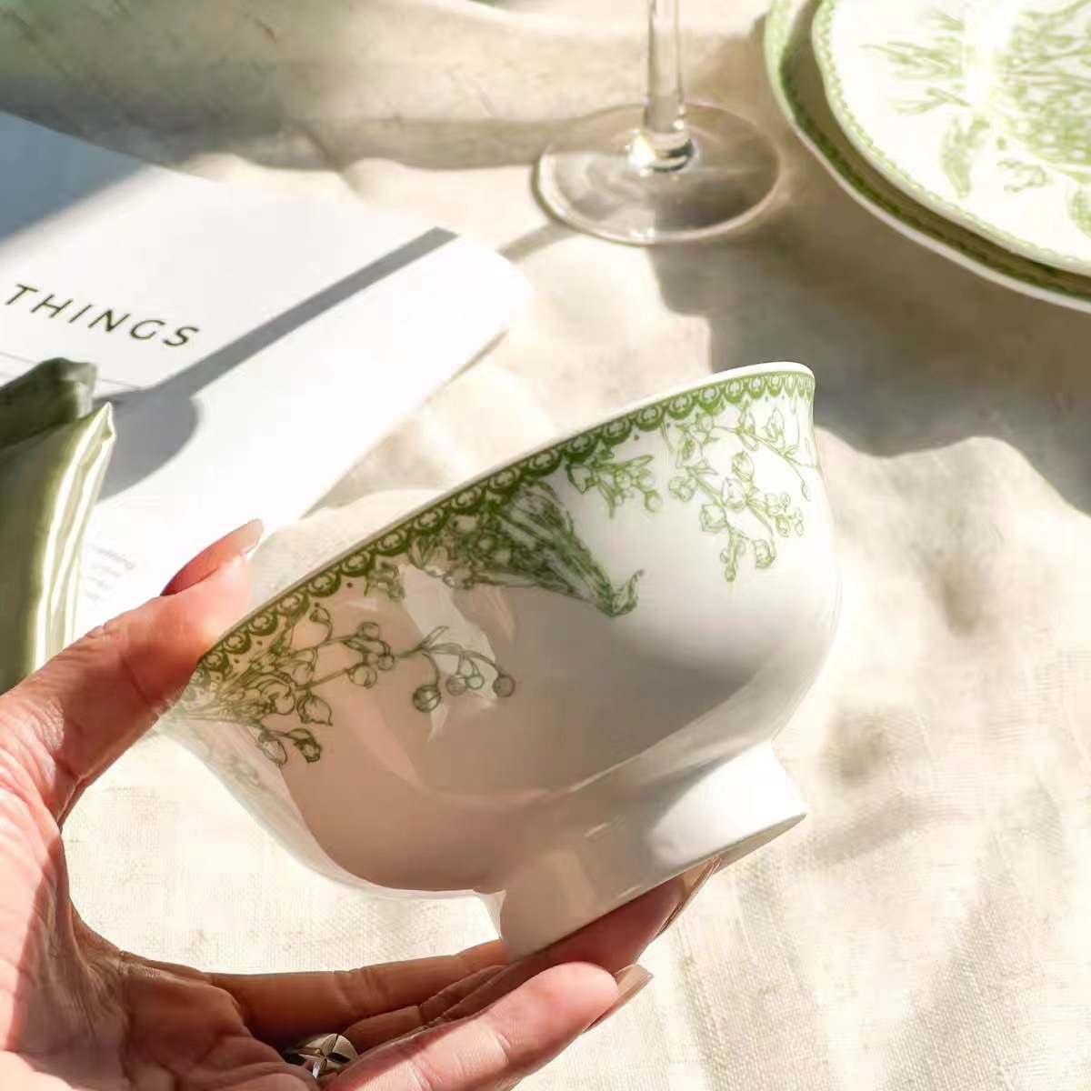 에메랄드 그린 은방울꽃 시리즈 세라믹 서양식 디너 플레이트 세트 고급 케이크 플레이트 프렌치 플레이트