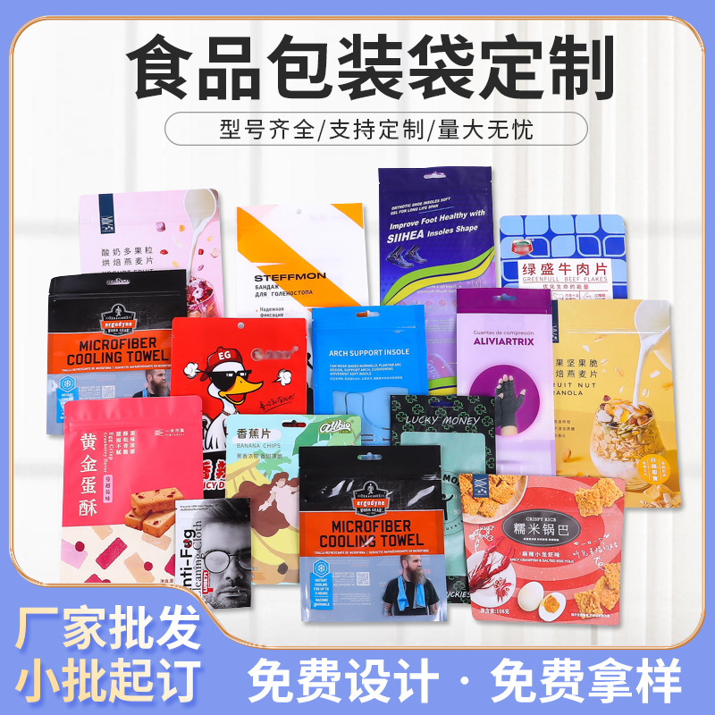 플라스틱 식품 포장 백 맞춤형 로고 자립형 지퍼백 스낵용 삼면 밀봉 팔면 밀봉 알루미늄 호일 지퍼백