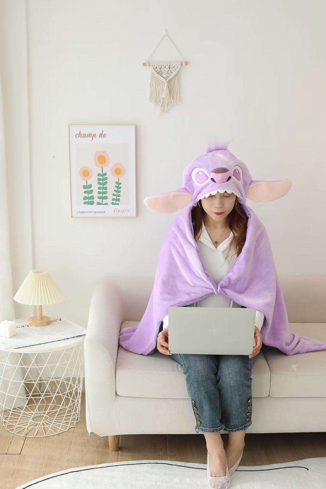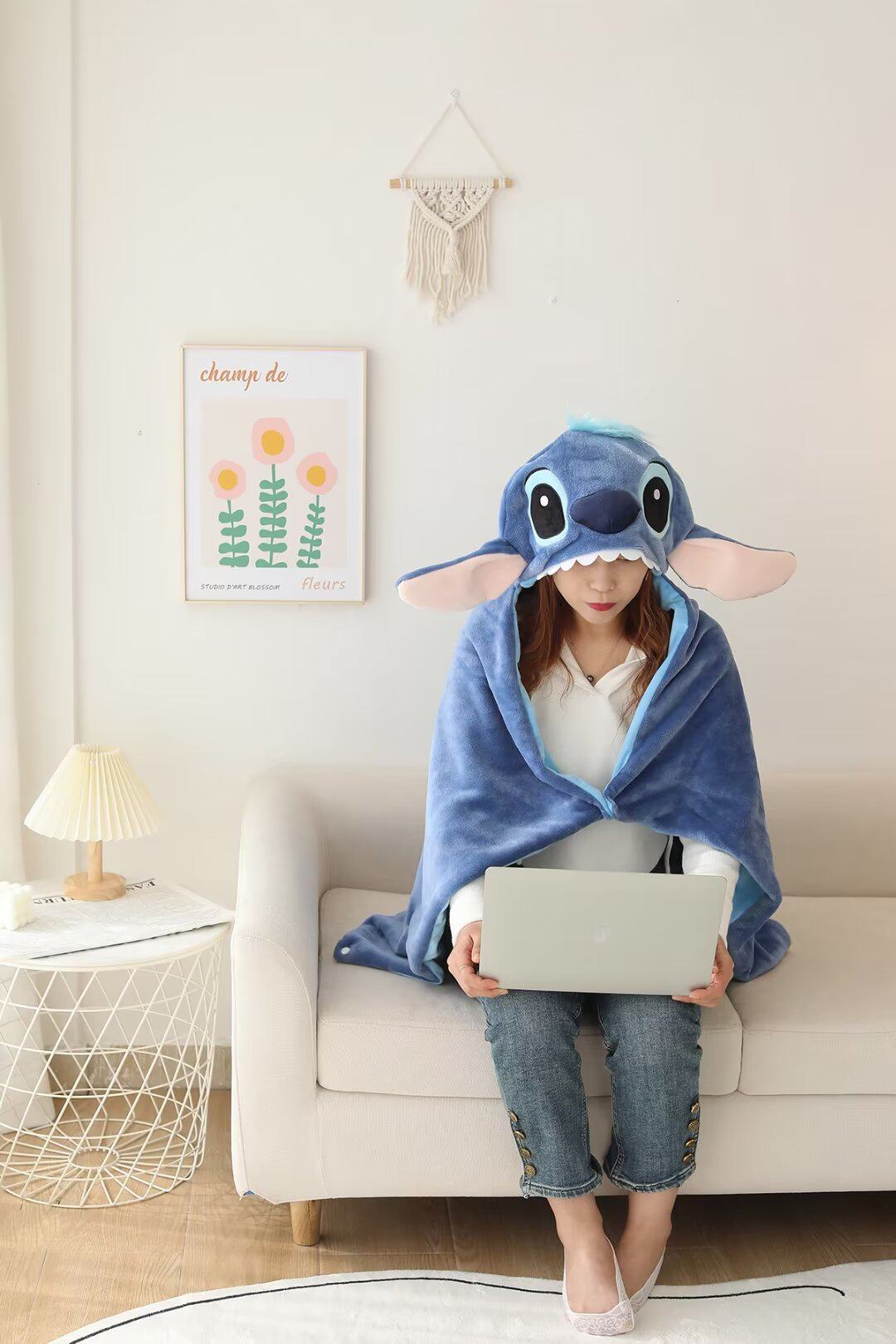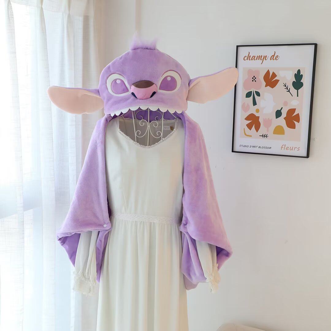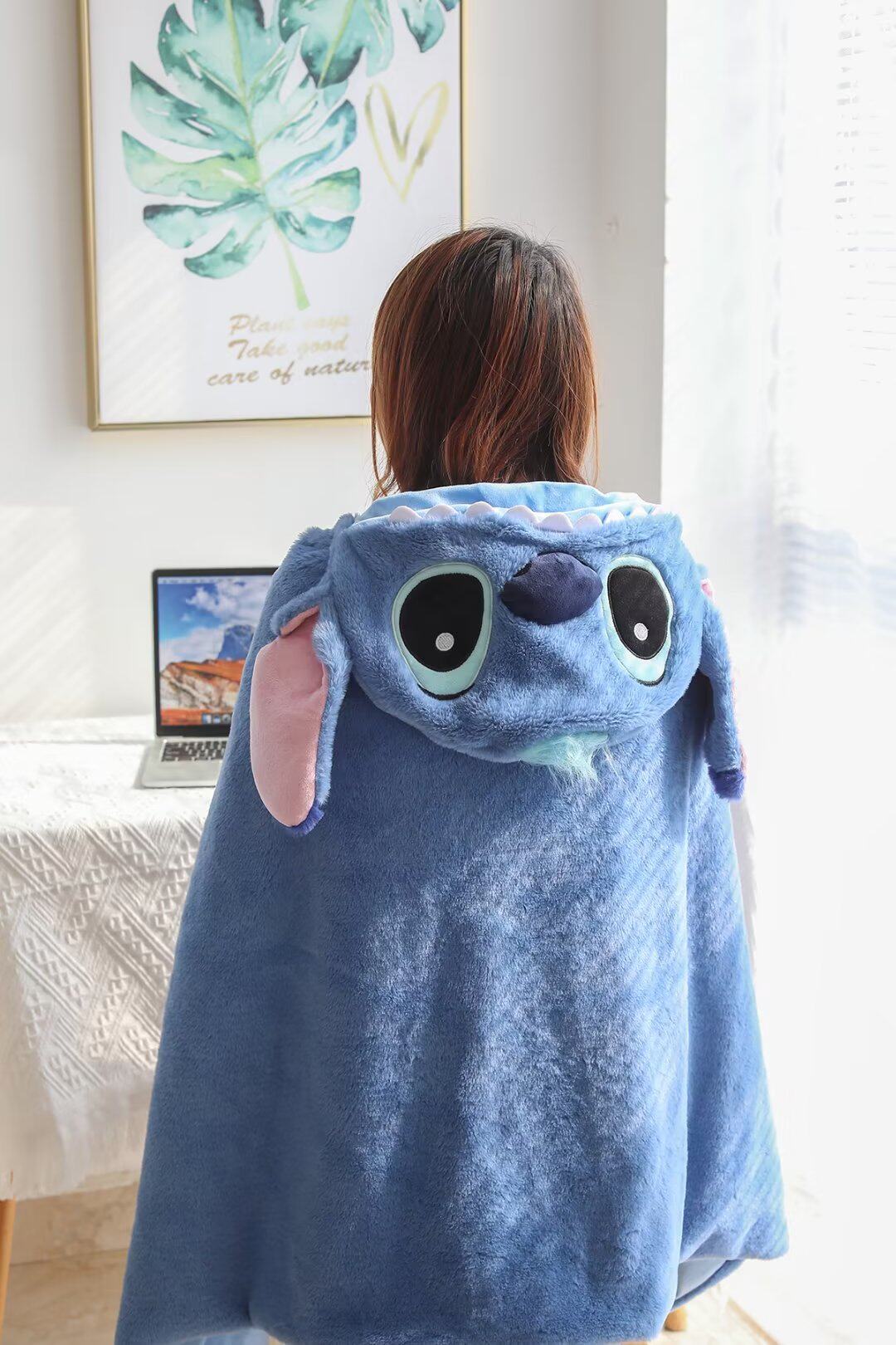 만화 귀여운 스티치 후드 망토 학생 숄 두꺼운 따뜻한 낮잠 망토 사무실 에어컨 담요스토어 가기