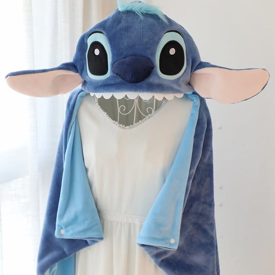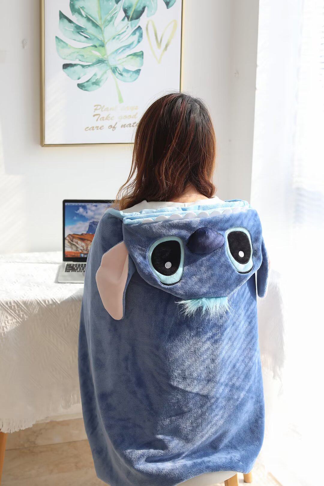 만화 귀여운 스티치 후드 망토 학생 숄 두꺼운 따뜻한 낮잠 망토 사무실 에어컨 담요
