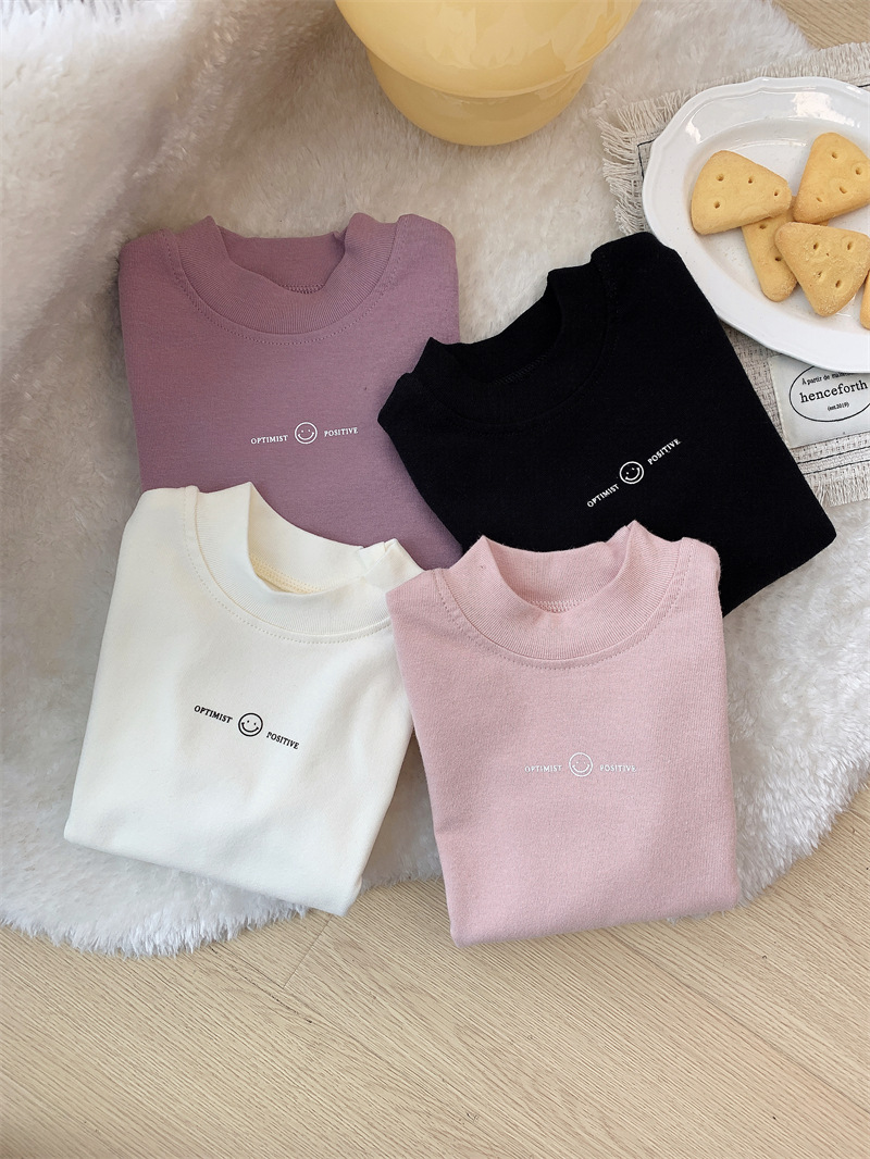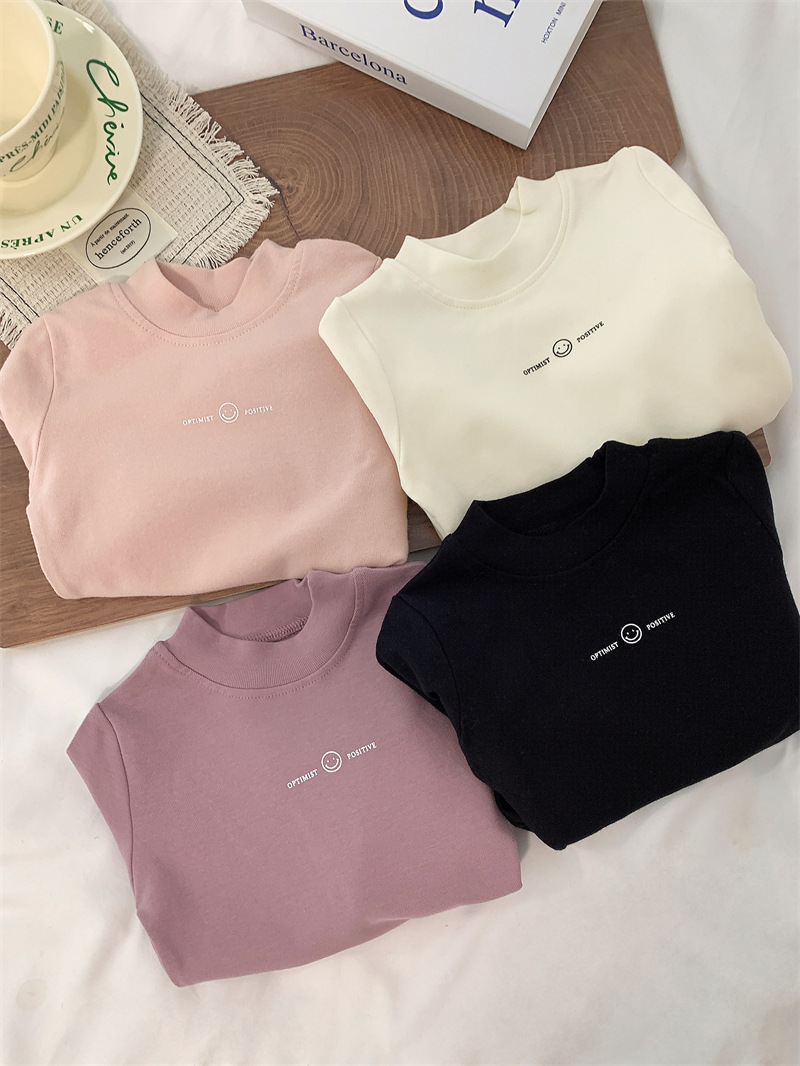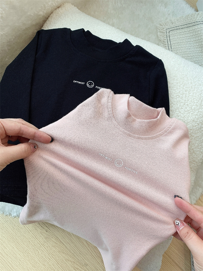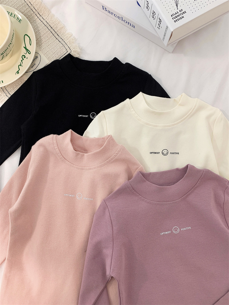 여아용 봄, 가을 신상 순면 부드러운 아동용 하프 터틀넥 긴팔 상의 아기 긴팔 티셔츠 가을