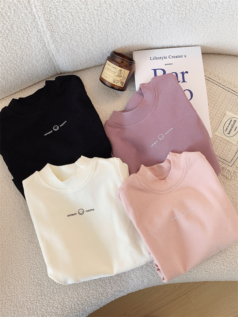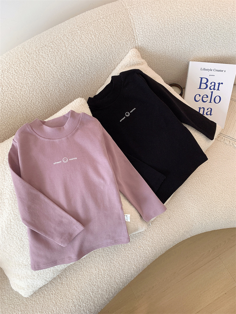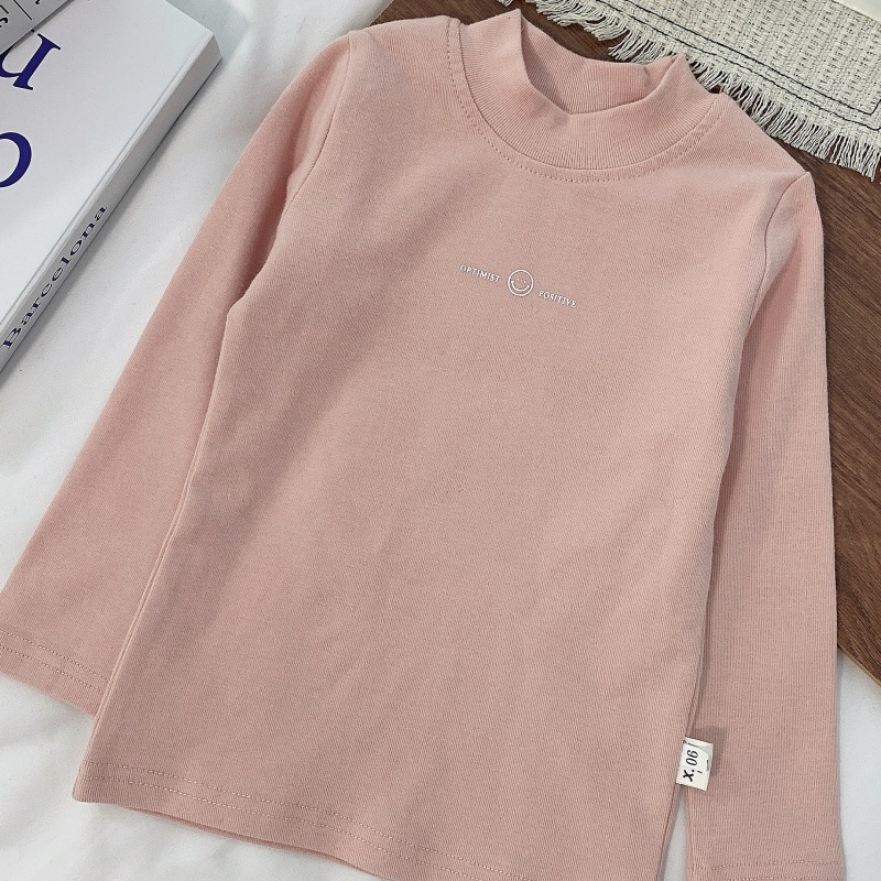 여아용 봄, 가을 신상 순면 부드러운 아동용 하프 터틀넥 긴팔 상의 아기 긴팔 티셔츠 가을스토어 가기