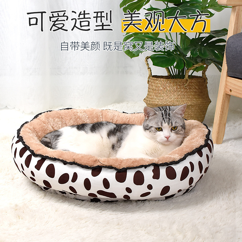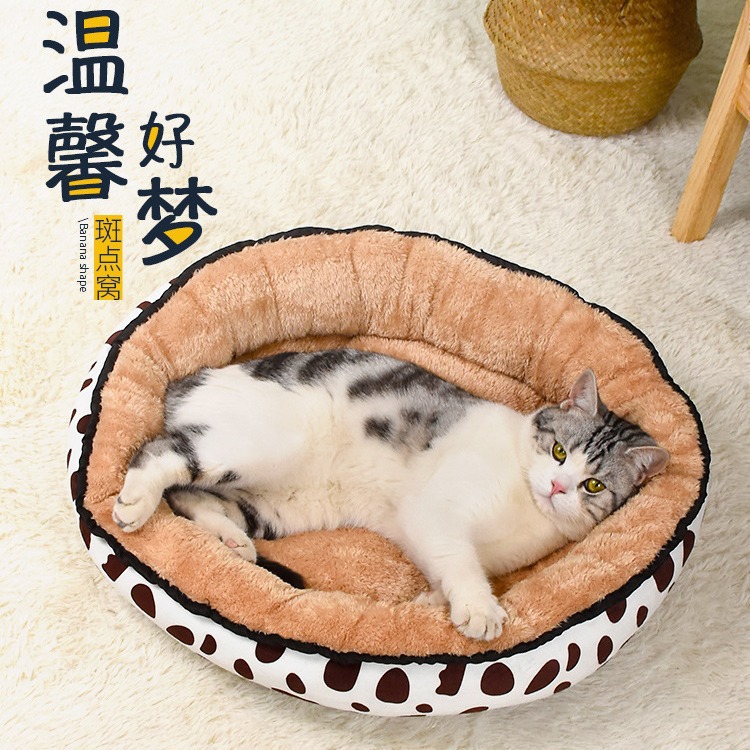 고양이 침대, 반점 무늬 에그타르트 모양 개집, 개방형 침대, 고양이 침대, 소형견용 부드러운 애완동물 침대, 고양이와 강아지 모두 사용 가능한 침대