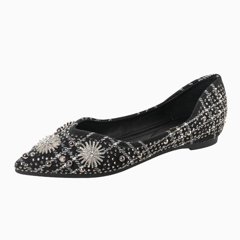 여성용 봄 가을 플랫 슈즈 2025년 신상품 워터다이아몬드 장식의 우아한 플랫 슈즈, 에스닉 스타일, 해외 여성화, 대형 사이즈 41~43