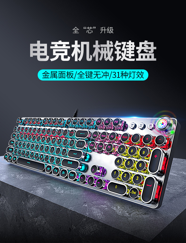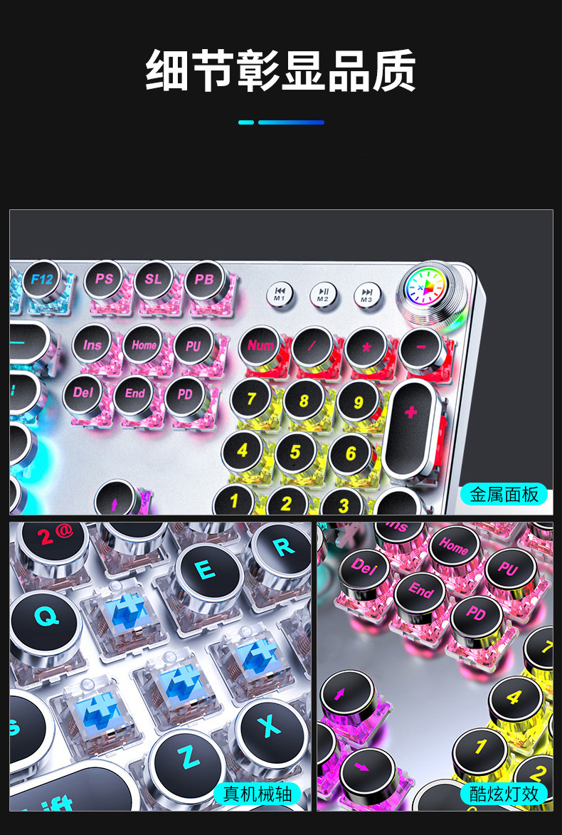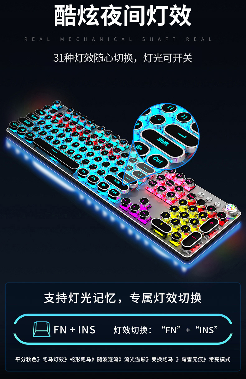 TK100 유선 기계식 키보드 금속 키캡 기계식 스위치 키보드 마우스 헤드셋 펑크 게임 키보드 마우스 도매스토어 가기