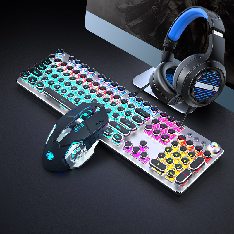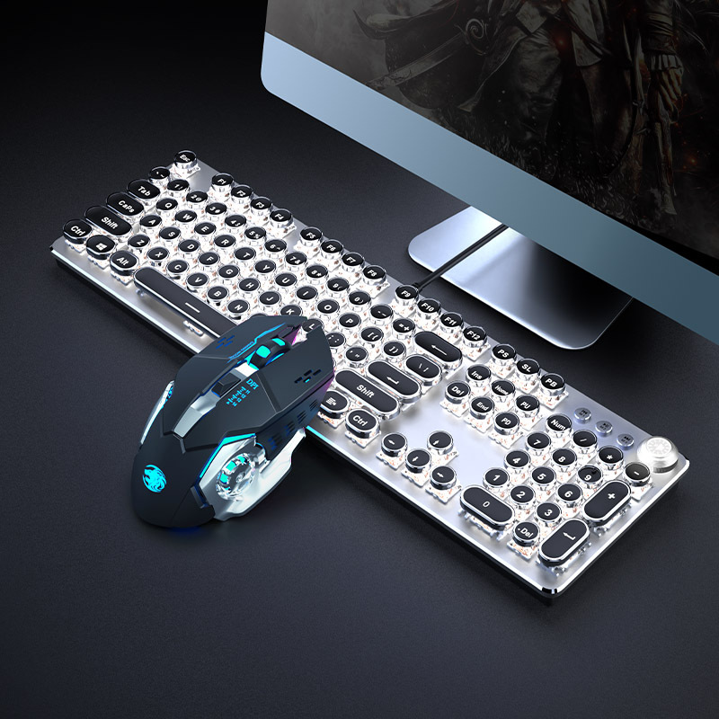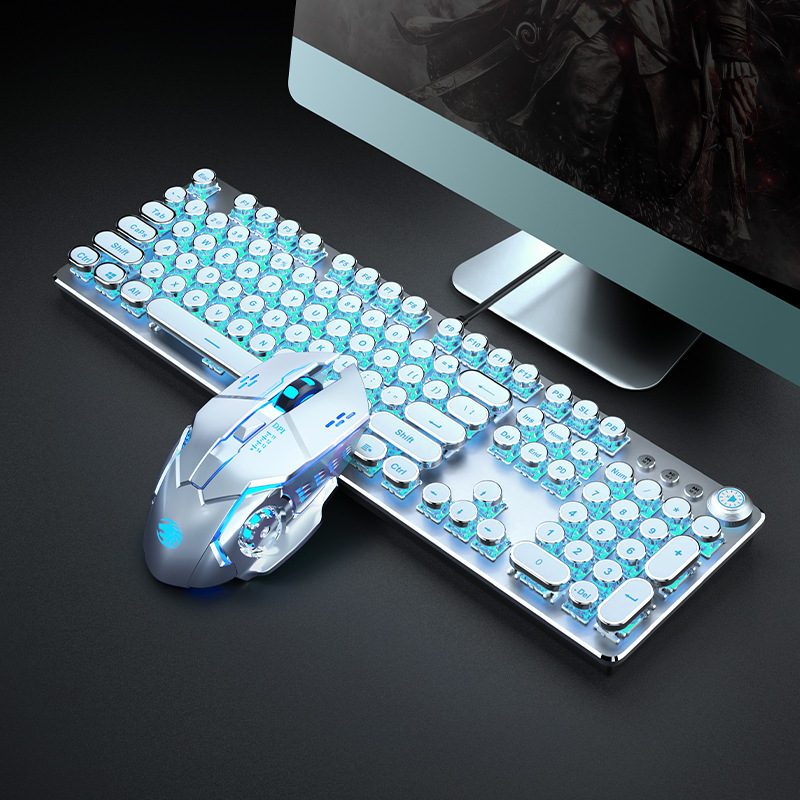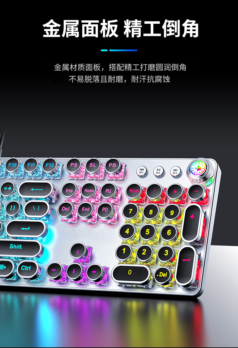 TK100 유선 기계식 키보드 금속 키캡 기계식 스위치 키보드 마우스 헤드셋 펑크 게임 키보드 마우스 도매
