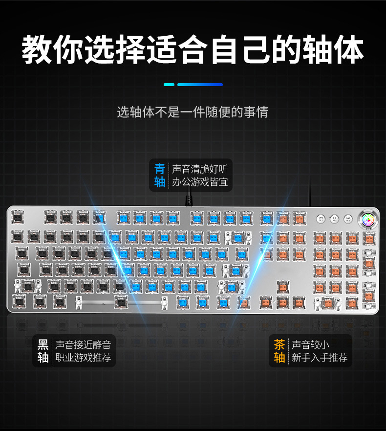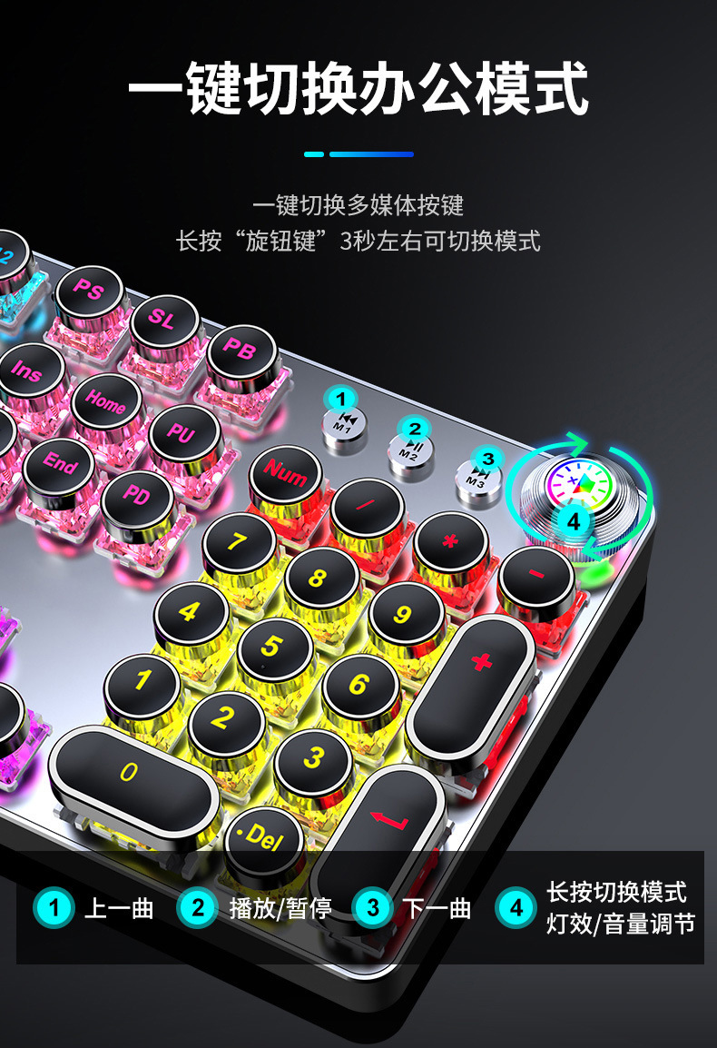 • 유선 화이트 그린 샤프트 혼합 라이트 펑크 [노브 버전] + 유선 마우스 + 유선 헤드셋