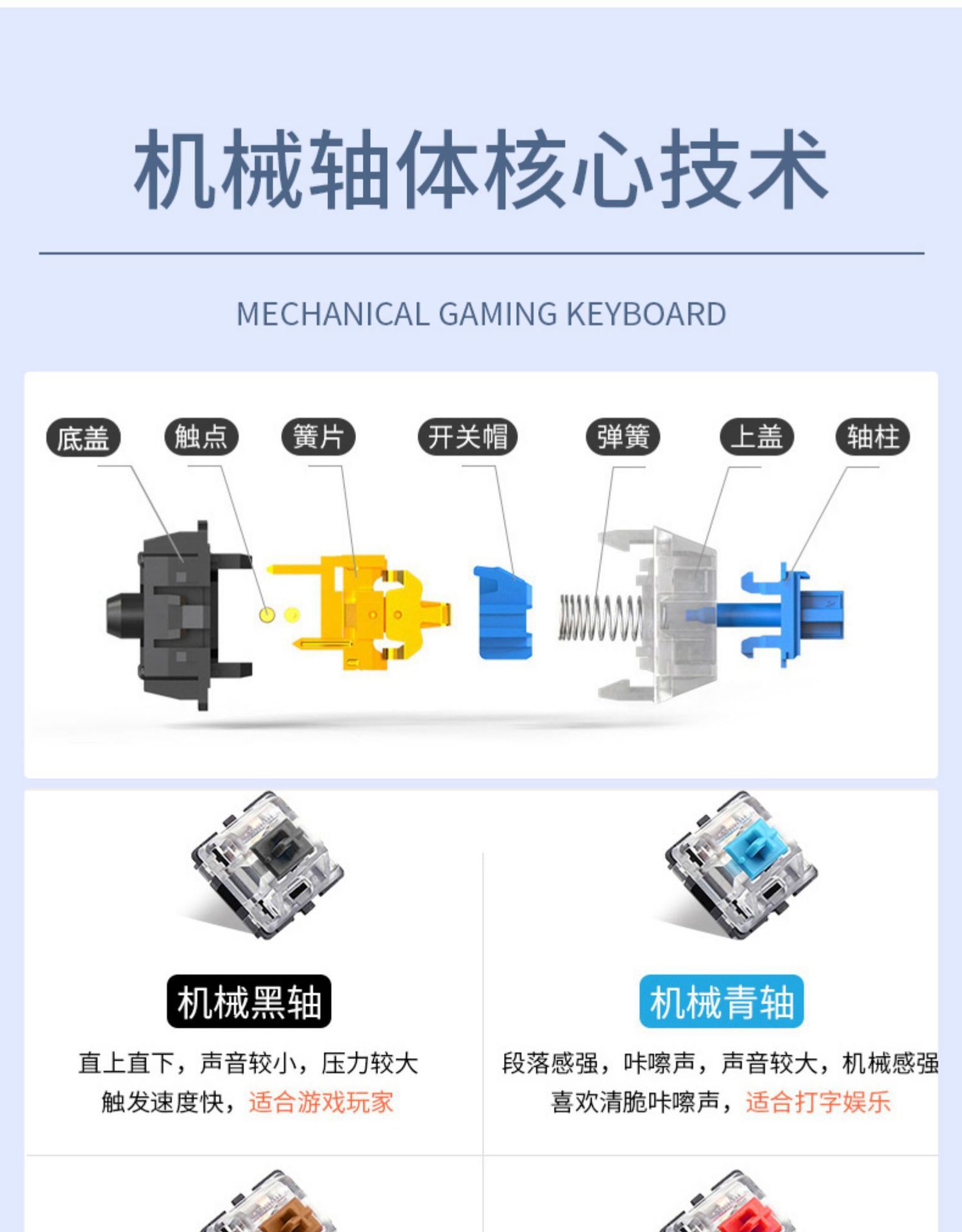 • 유선 화이트 블루 축 [노브 버전 포함] + 유선 마우스 + 유선 헤드셋