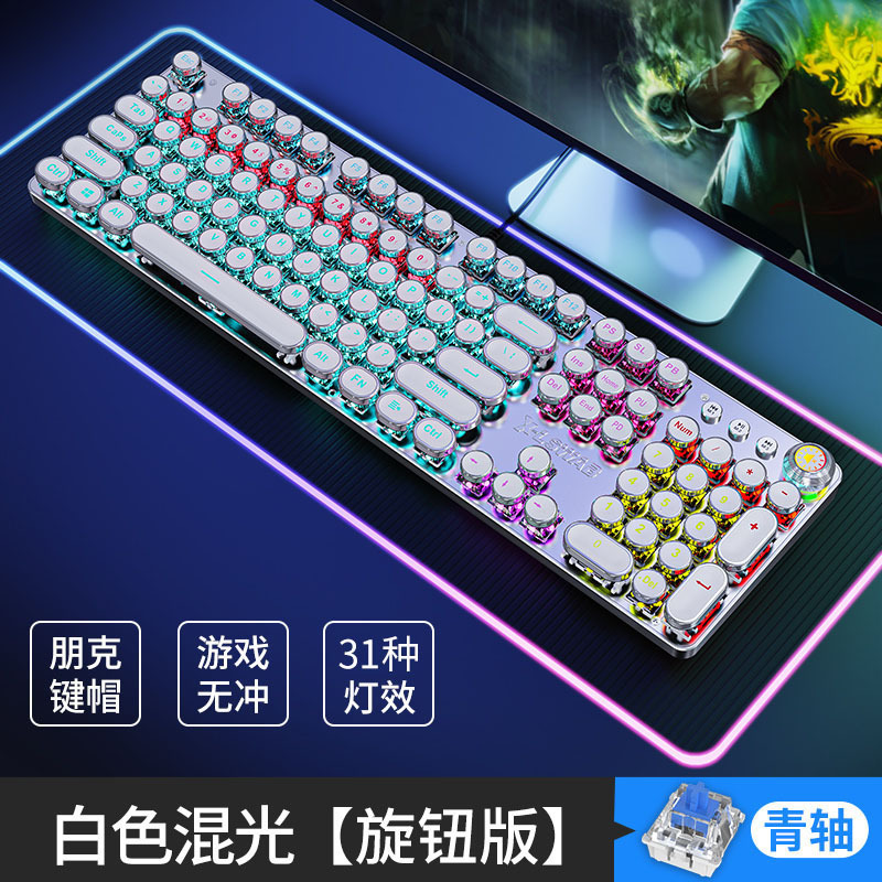 • 유선 화이트 그린 샤프트 혼합 라이트 펑크 [노브 버전] + 유선 마우스