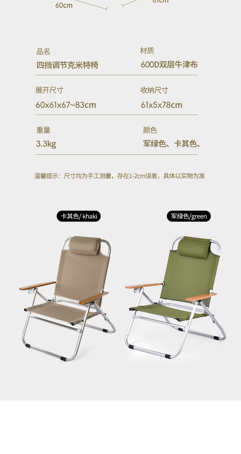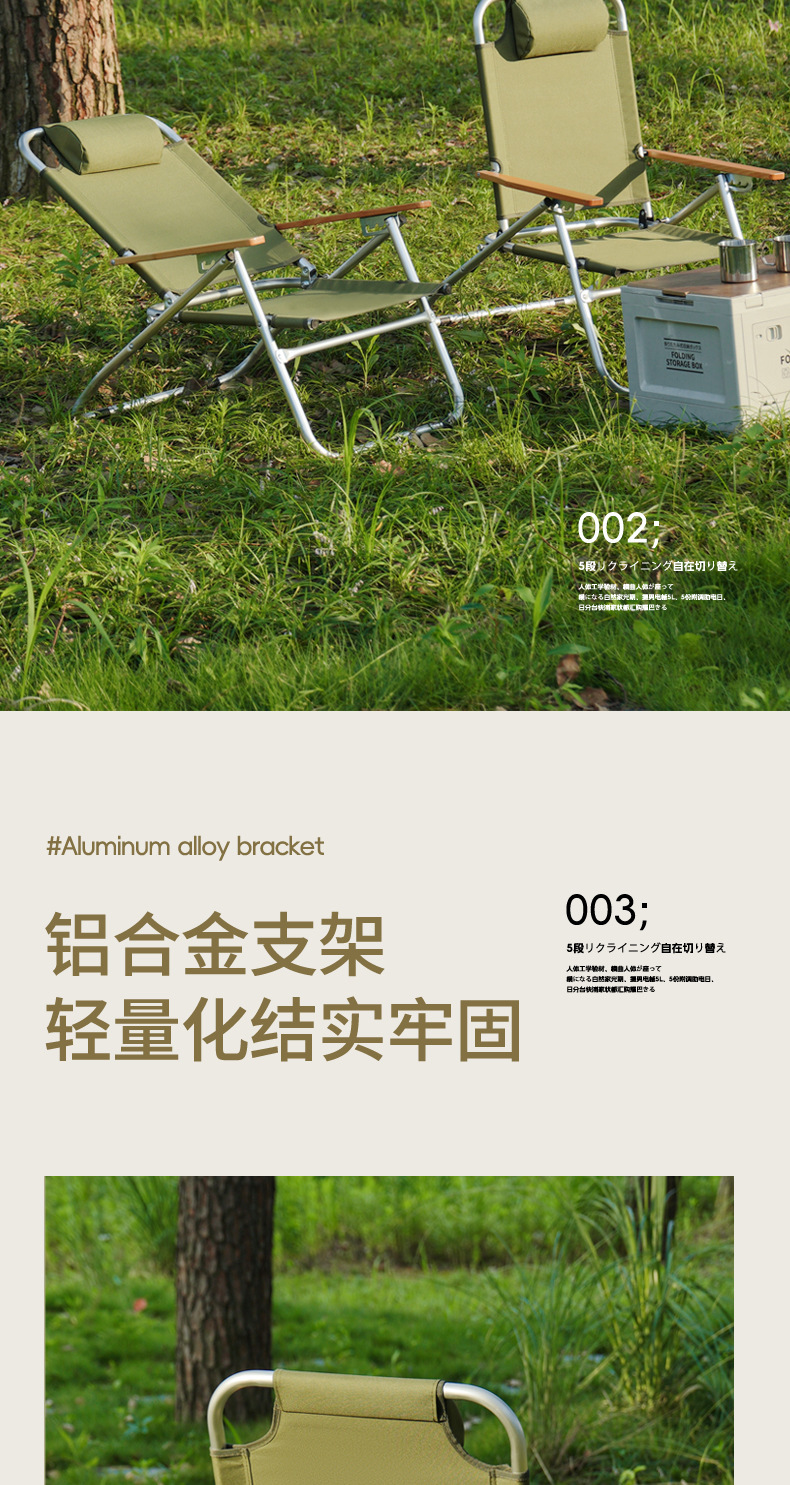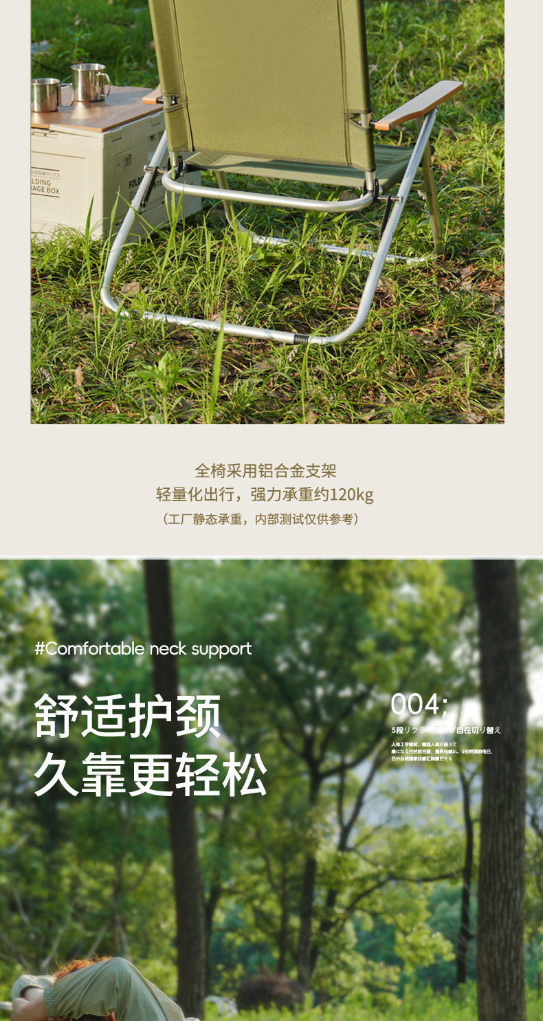 야외 접이식 캠핑 의자, 휴대용 4단 알루미늄 합금 조절 가능한 커밋 의자, 하이백 라운지 의자, 낮잠 의자