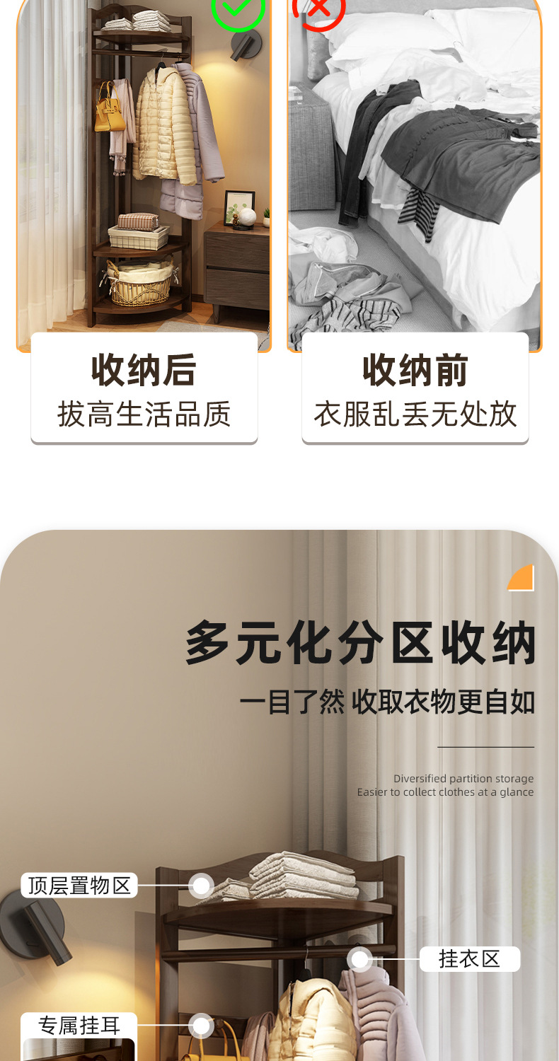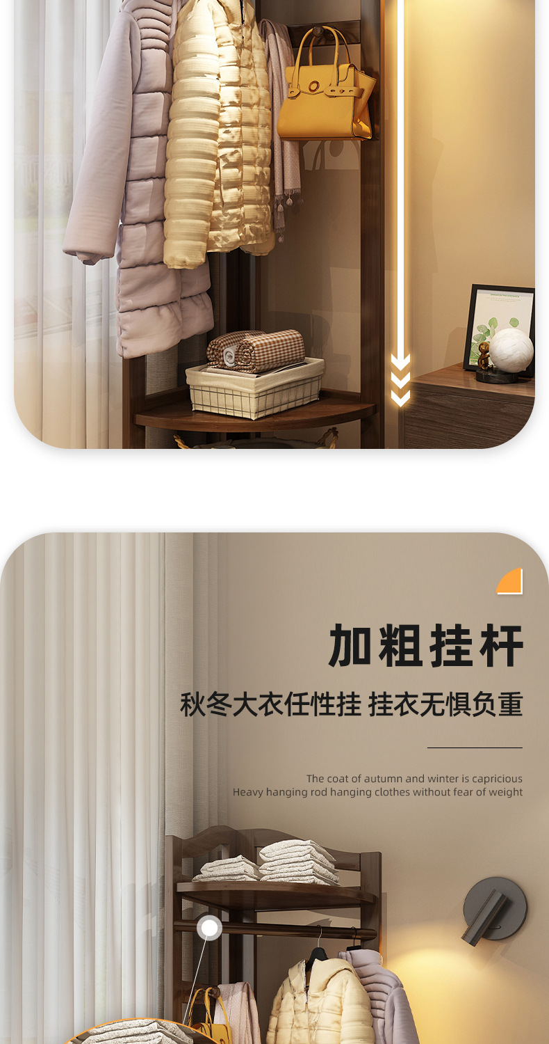 침실 코너 코트 랙 간단한 가정용 바닥에 서있는 옷걸이 대담한 코너 걸이 코너 모자 보관 랙