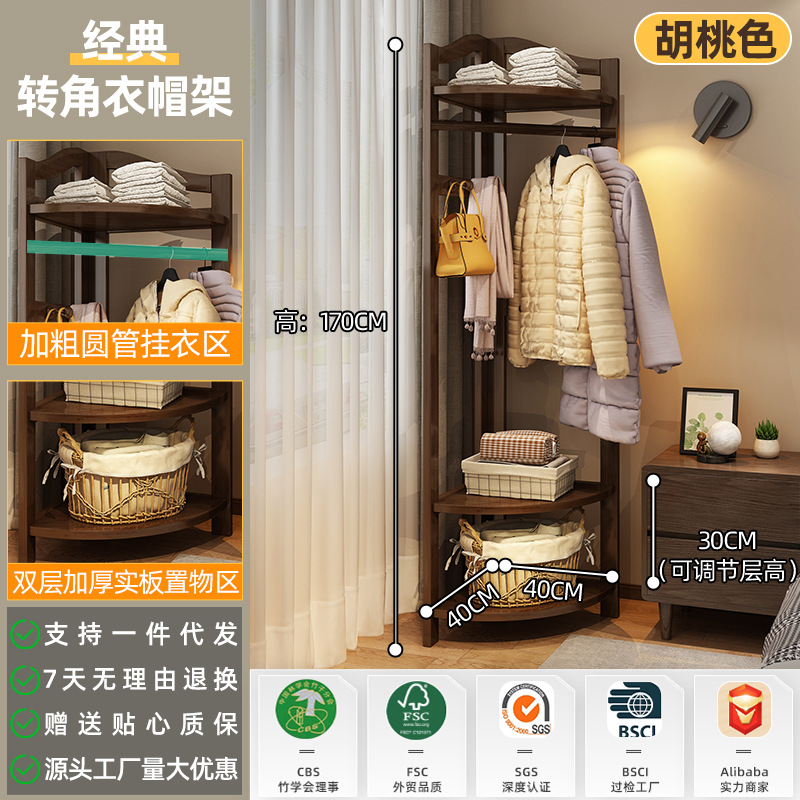 • 코너 코트 랙-호두 색 [1 년간 대담한 업그레이드 보증]]