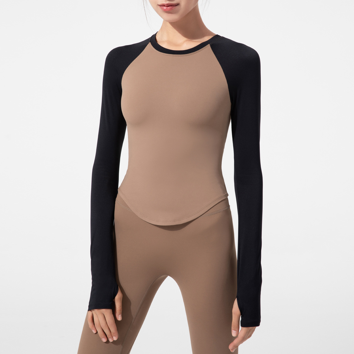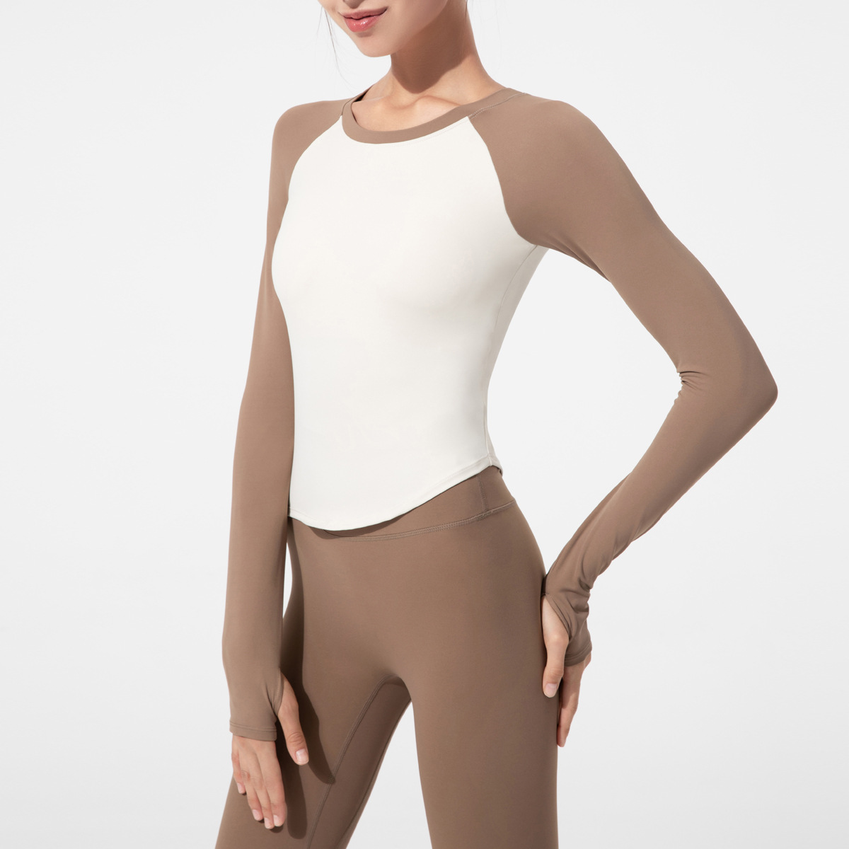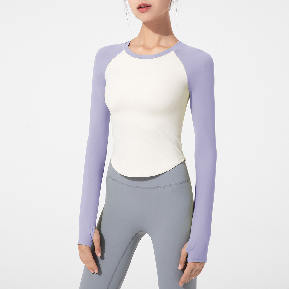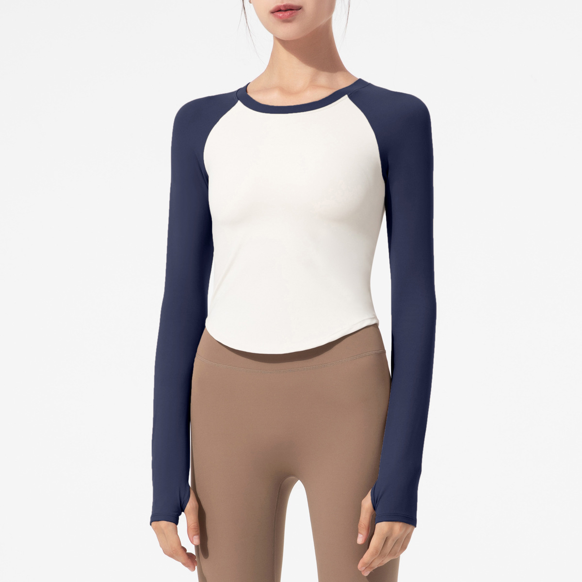 요가복 긴팔 여성용 2025 신상 가슴 패드 내장 타이트 핏 배색 상의 티셔츠 스포츠 러닝 트레이닝 피트니스복스토어 가기