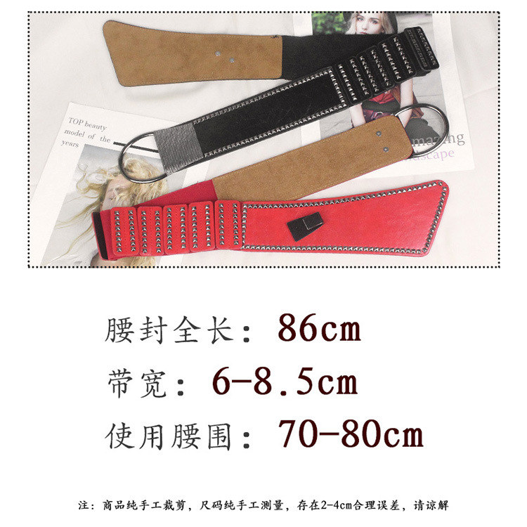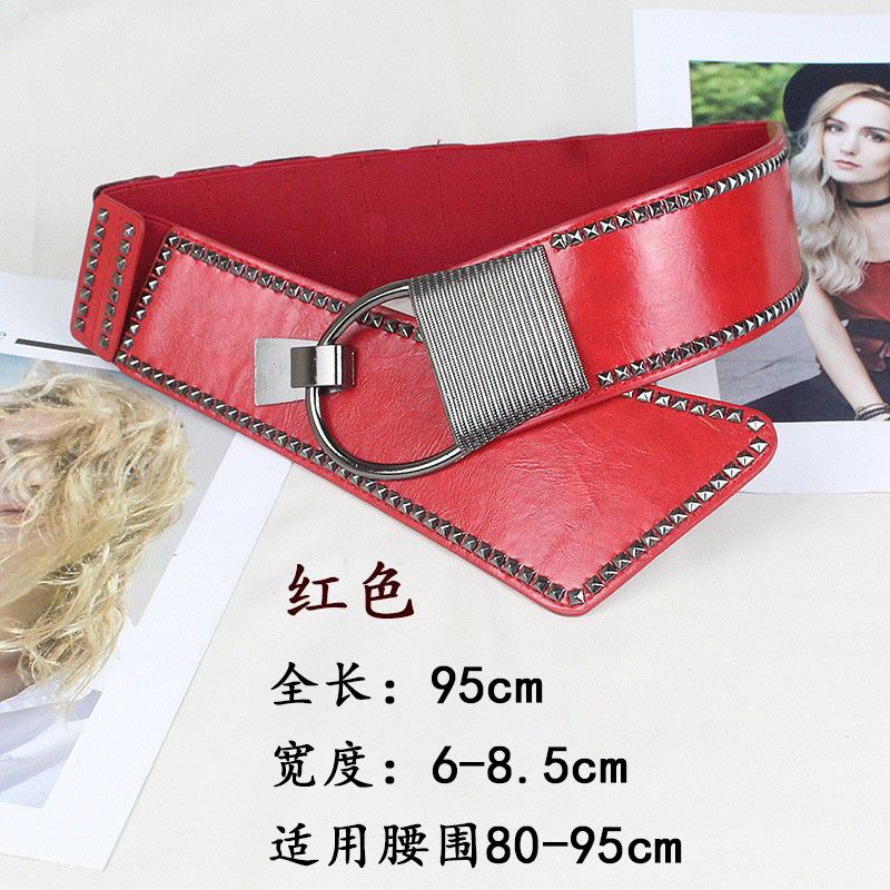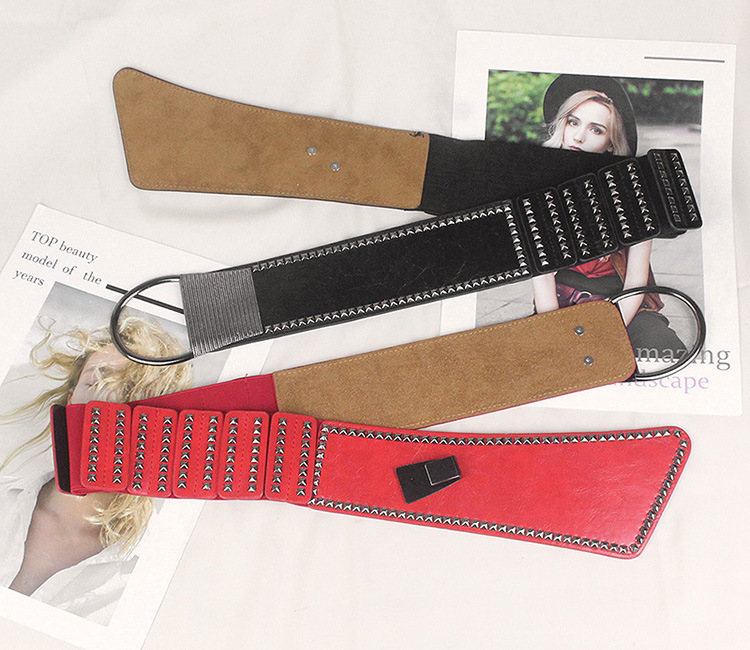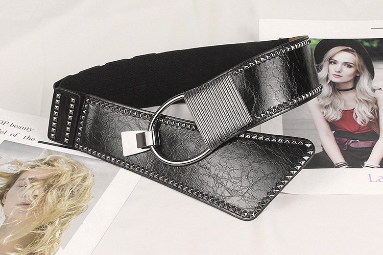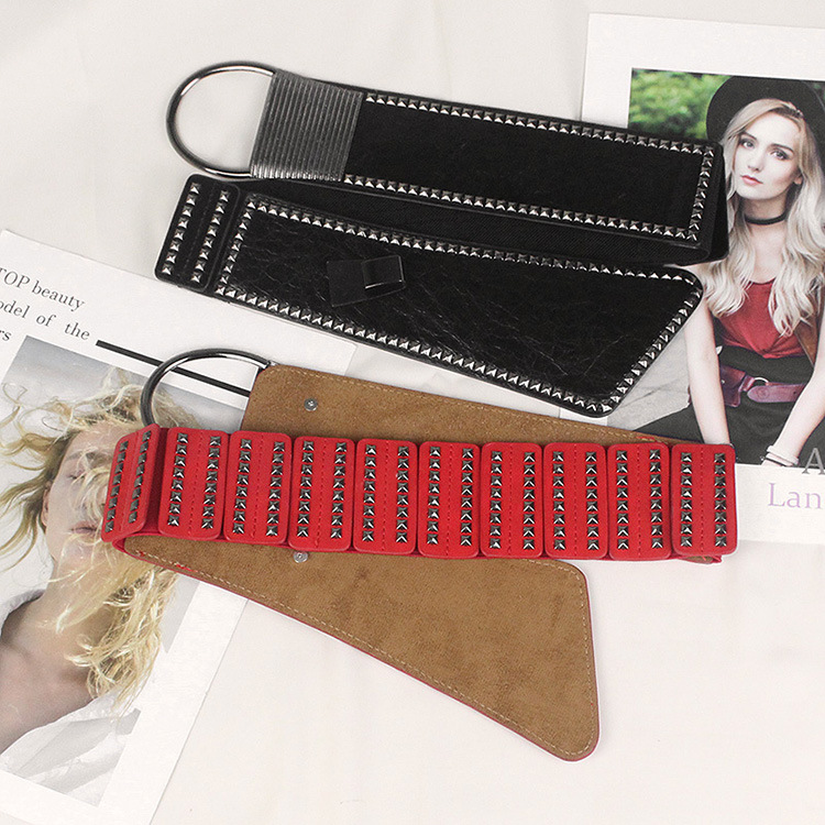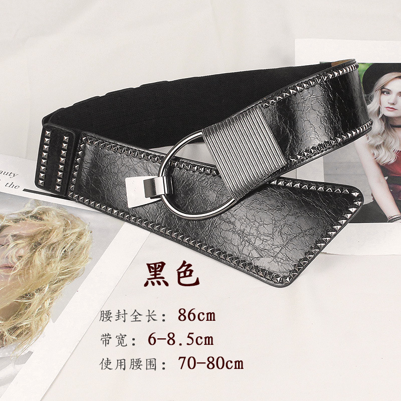 비스듬한 허리 물개 여자의 넓은 리벳 펑크 스타일 장식 탄성 벨트 원피스 코트 세트 탄성 벨트스토어 가기
