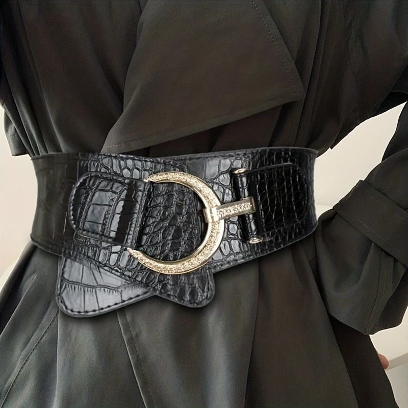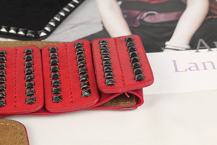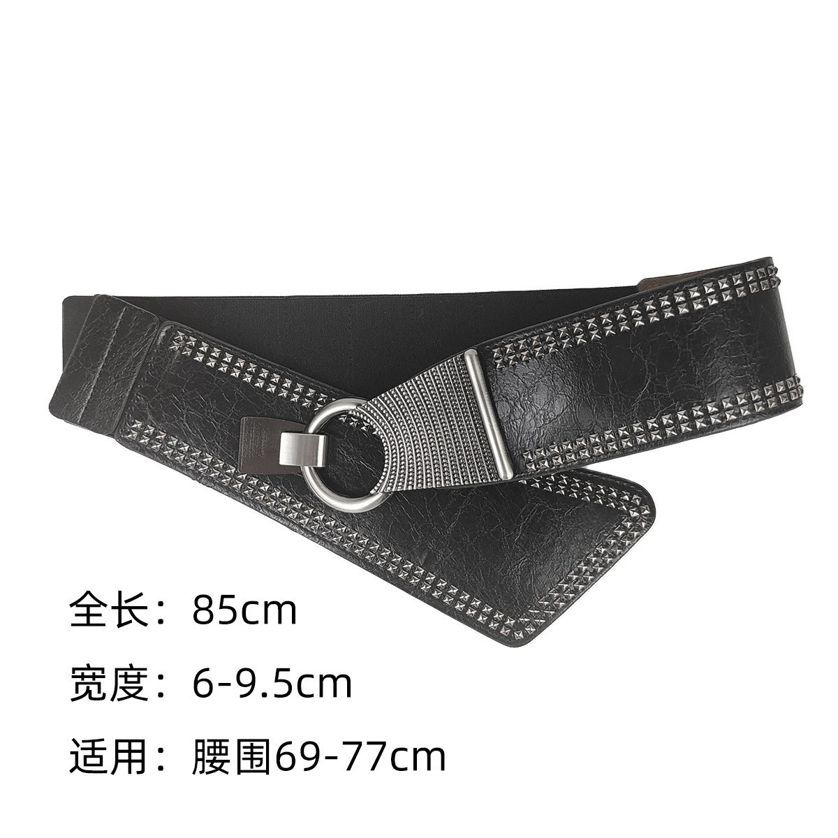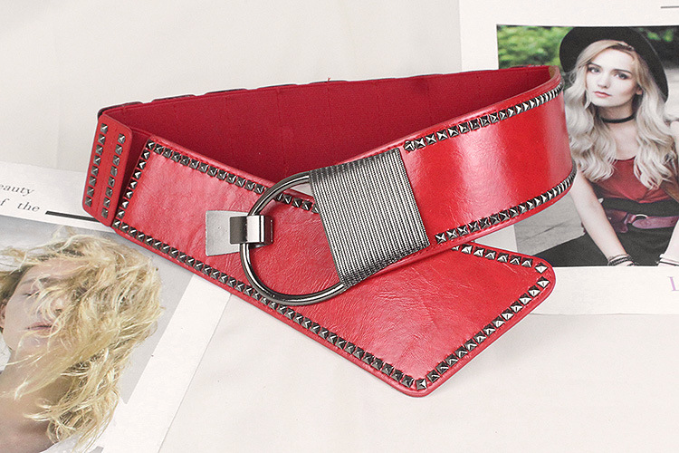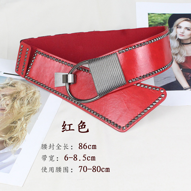 비스듬한 허리 물개 여자의 넓은 리벳 펑크 스타일 장식 탄성 벨트 원피스 코트 세트 탄성 벨트스토어 가기