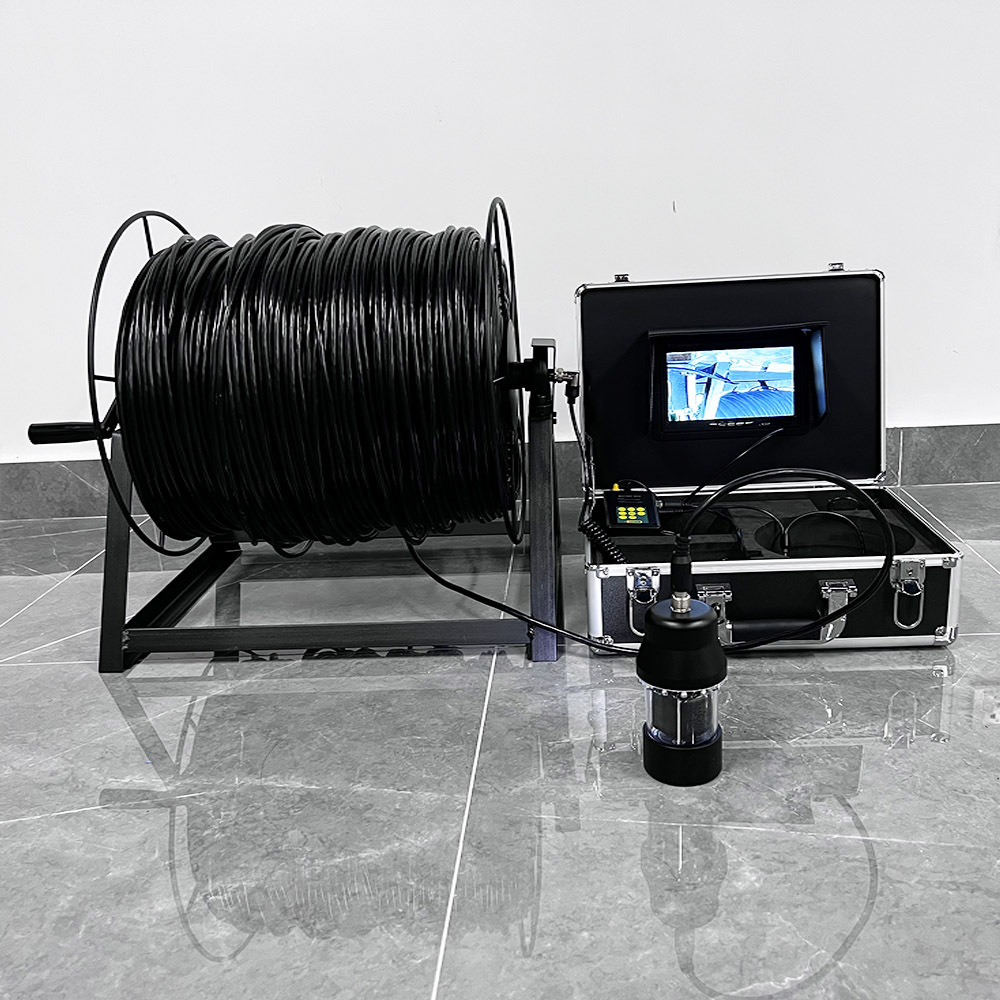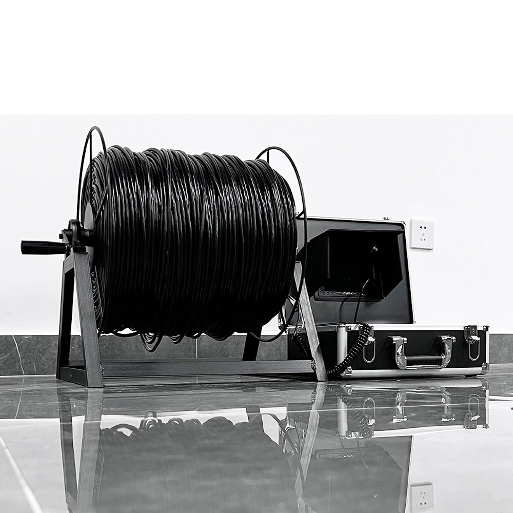 型号:F8200B-300M 7寸屏 300米360度旋转水下监控系统6.5MM电缆 共38颗LED,红外灯18颗白光灯20颗 灯控制状态4种 带电量显示 铝合金黑色 可拆卸接五金接头 带线架