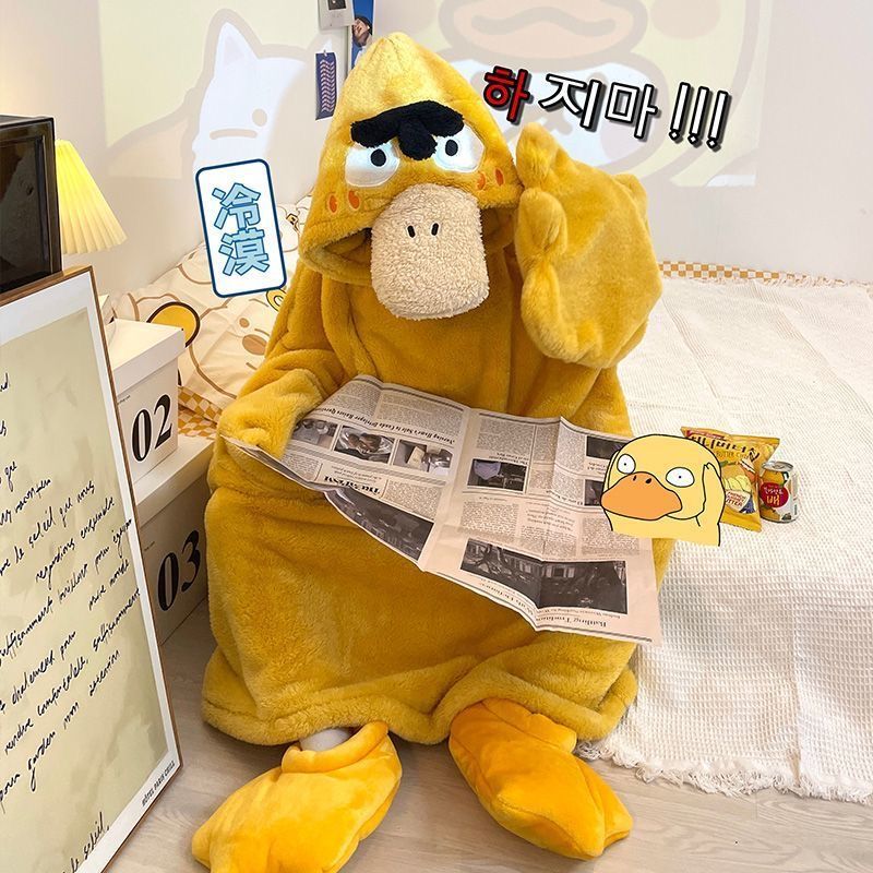 Keda 오리 잠옷 여자의 가을과 겨울 귀여운 재미 못생긴 귀여운 오리 인터넷 두꺼운 산호 양털 침낭 기모 인기있는 같은 스타일스토어 가기