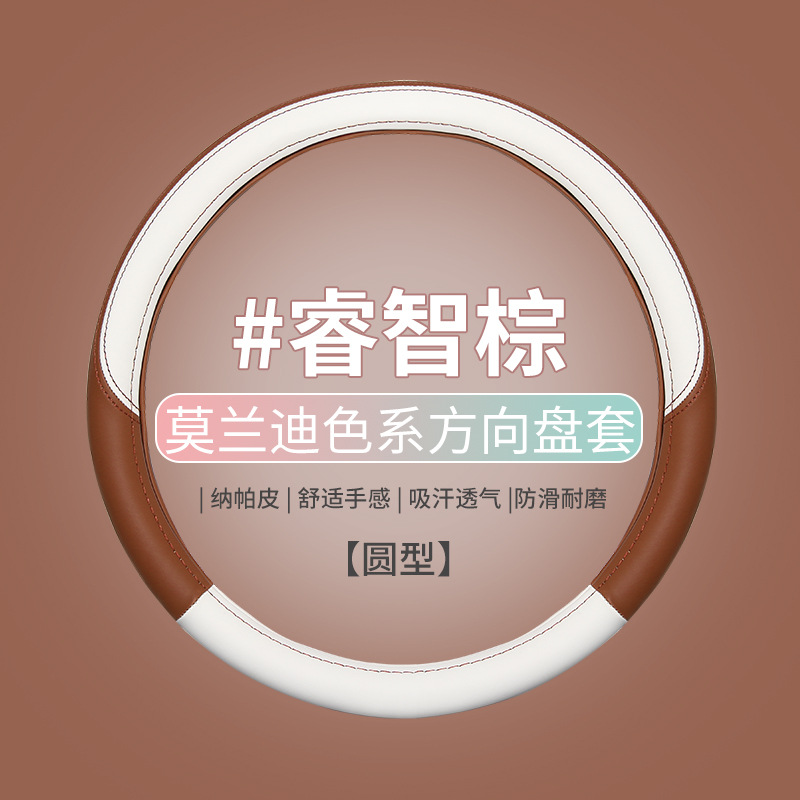자동차 핸들 커버 나파 가죽 여름용 미끄럼 방지 원형 O형 38cm 자동차 커버 통기성 오라