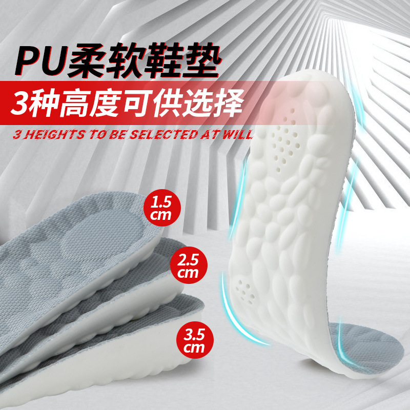 남녀공용 PU 키높이 깔창, 통기성, 땀 흡수, 부드러운 러닝 깔창, 두꺼운 소프트 밑창, 푹신한 탄력성 스포츠 깔창스토어 가기