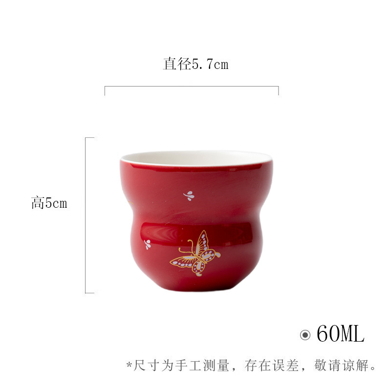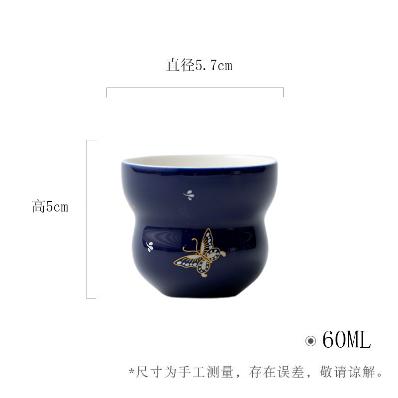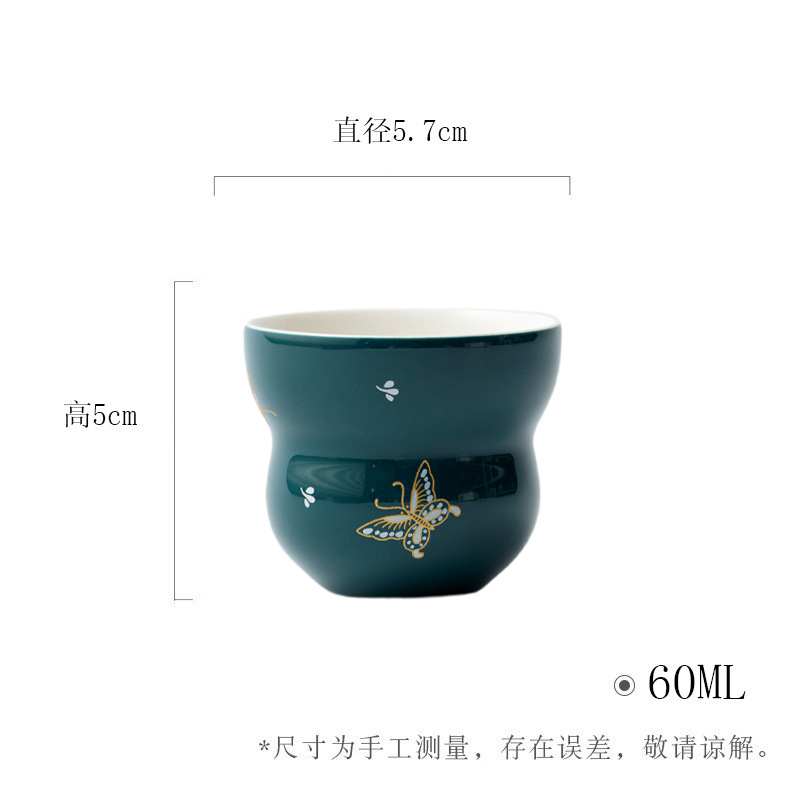 모지 카마인 조롱박 차 컵 쿵푸 차 세트 literati 차 시음 컵 금색과 실버 잘못된 춤 나비 세라믹 마스터 컵