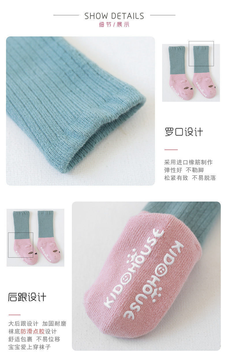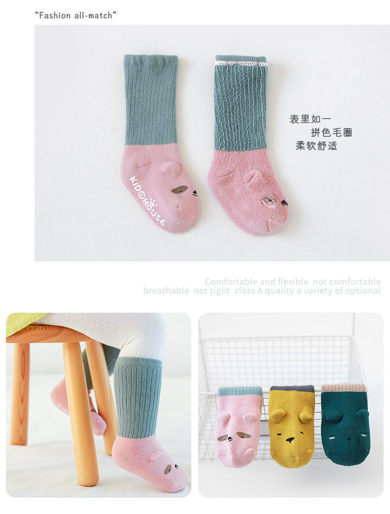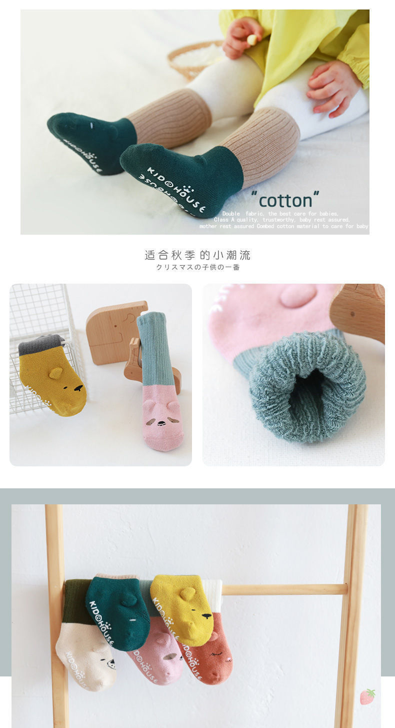 아기 양말 도매, 해외 무역, 가을 겨울용, 두꺼운 테리 중간 길이, 미끄럼 방지, 남녀 아기용 면 양말스토어 가기
