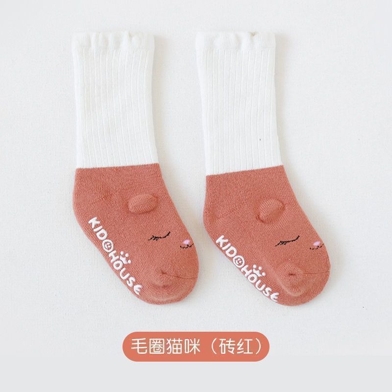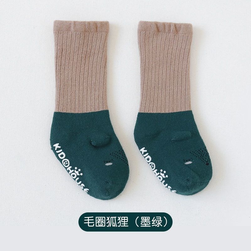 아기 양말 도매, 해외 무역, 가을 겨울용, 두꺼운 테리 중간 길이, 미끄럼 방지, 남녀 아기용 면 양말