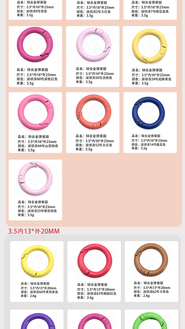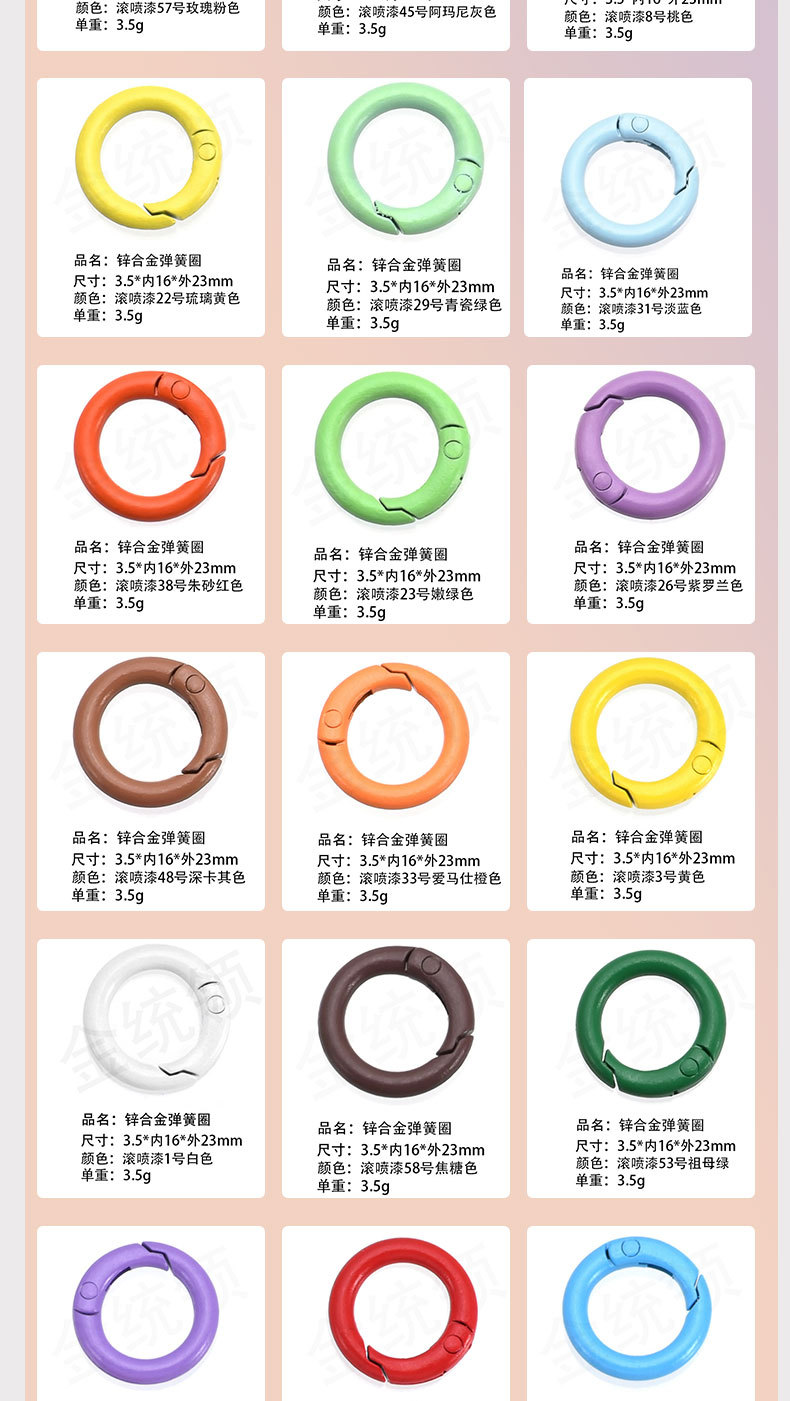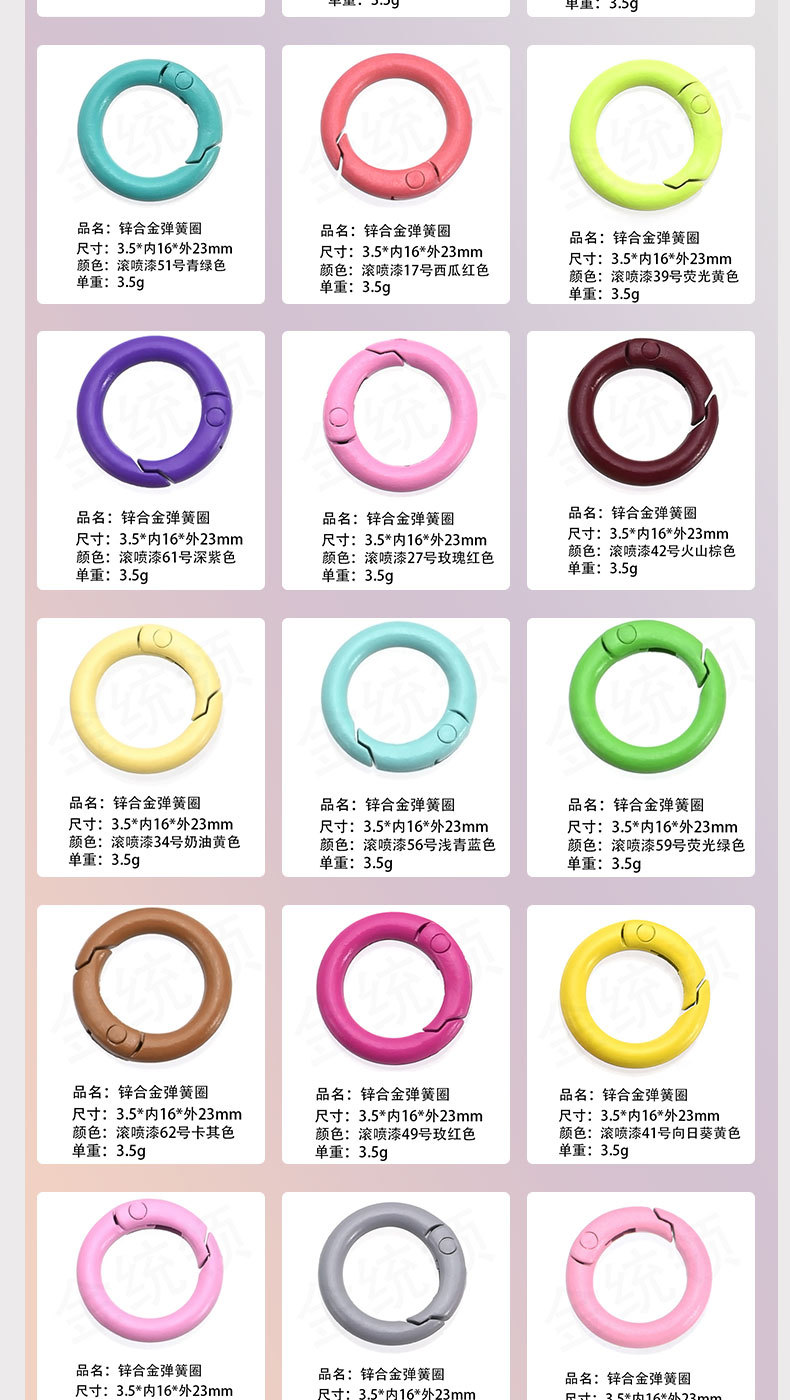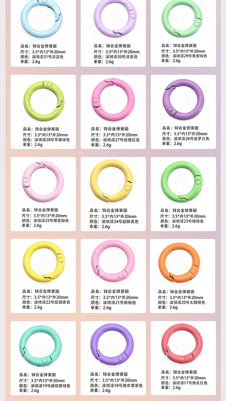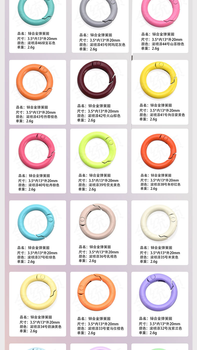 烤漆弹簧圈 彩色弹簧扣 烤漆弹簧扣 彩色开口扣 烤漆开口扣 五金弹簧圈 彩色五金弹簧圈 烤漆五金弹簧圈 金属弹簧圈 彩色金属弹簧圈 锌合金弹簧圈 欧标环保弹簧圈 欧标环保锌合金弹簧圈 环保锌合金弹簧圈