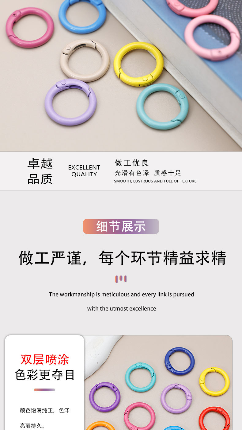 烤漆挂饰圆圈 环保挂饰圆圈 欧标挂饰圆圈 耐磨挂饰圆圈 大拉力挂饰圆圈 高弹性挂饰圆圈 抗拉挂饰圆圈 防酸挂饰圆圈 防锈挂饰圆圈 过盐雾测试挂饰圆圈 挂件圆圈 挂饰圆圈扣 挂件圆圈扣 锌合金弹簧扣 钥匙扣弹簧圈 文创弹簧圈 潮玩弹簧圈 谷子周边弹簧圈 登山扣弹簧圈 户外弹簧圈 旅行弹簧圈 露营弹簧圈 水瓶弹簧圈 七彩弹簧圈 高光泽弹簧圈