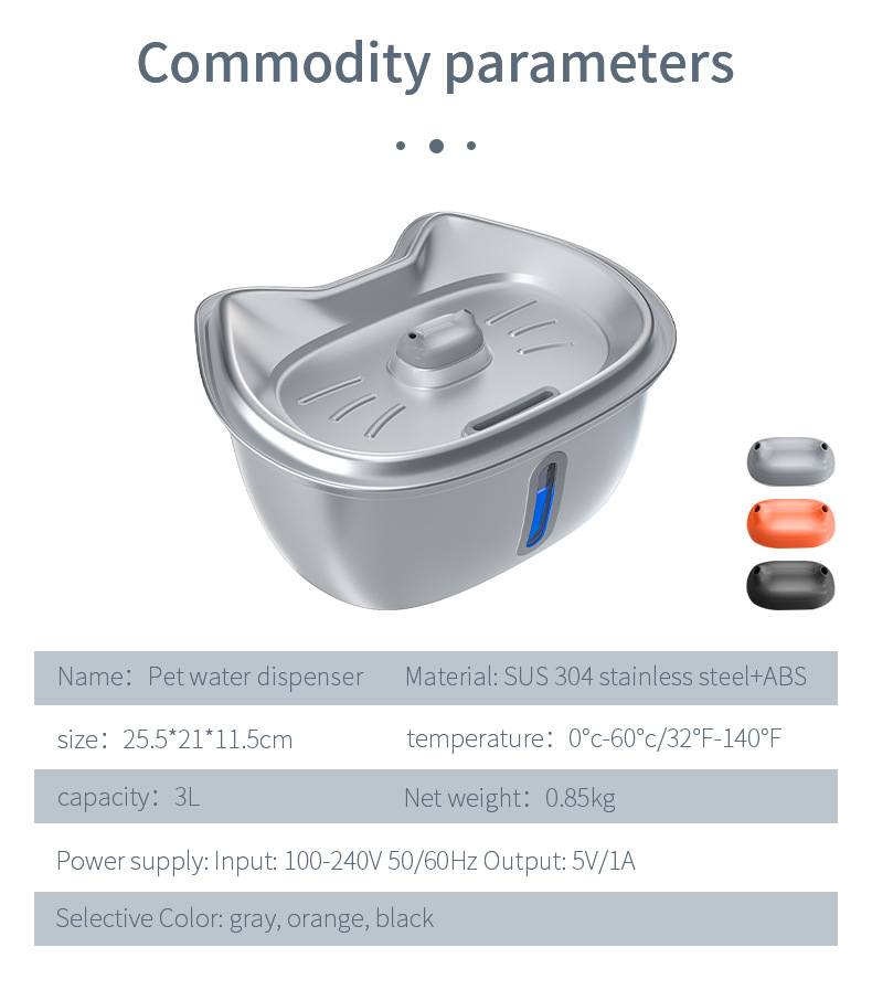 애완동물 급수기 3L 대용량 고양이 강아지 급수기 다중 필터링 생수 스테인리스 급수기 도매스토어 가기