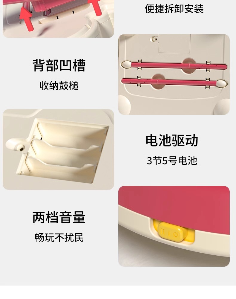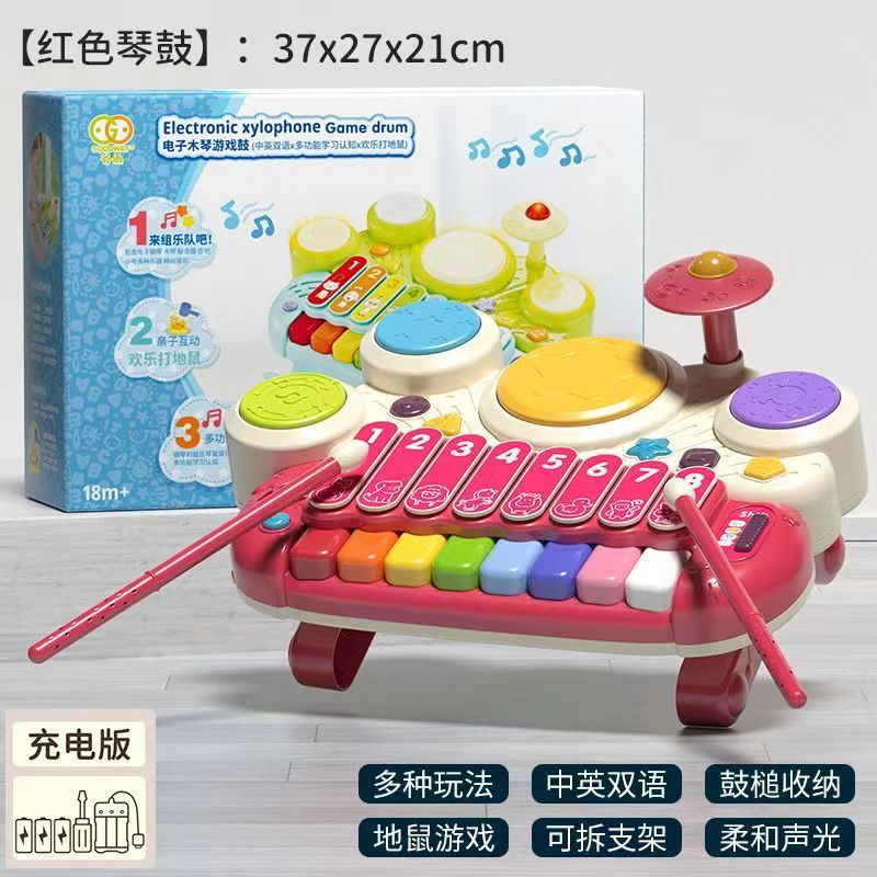 • Guyu 3502E 레드 전자 실로폰 게임 드럼 [충전식 배터리 버전]